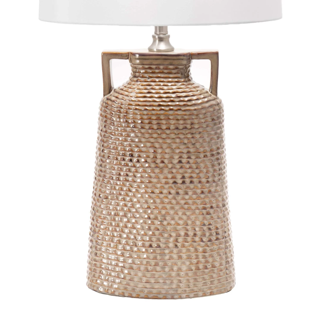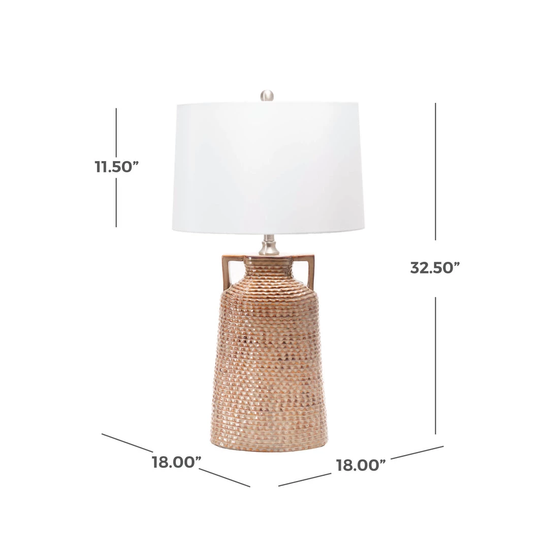 Let your room shine with the addition of this country style, 33-inch high, ceramic table lamp. It has a tapered fabric shade that delivers ambient lighting and will add a vibrant flair to any room.