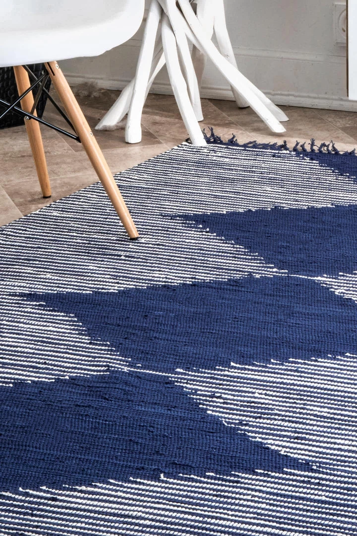 This 100% cotton flatweave rug is the perfect lightweight floor covering for any room in your home. This diamond and stripe pattern will make a beautiful addition to any existing contemporary decor. Choose the colorway that best suits your aesthetic.