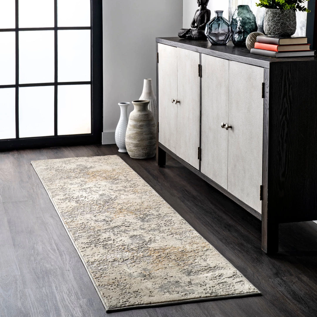 Unique distressed patterns are what make this collection so desirable. Machine made from durable, easy to clean polypropylene fibers, each piece features a beautiful abstract design.