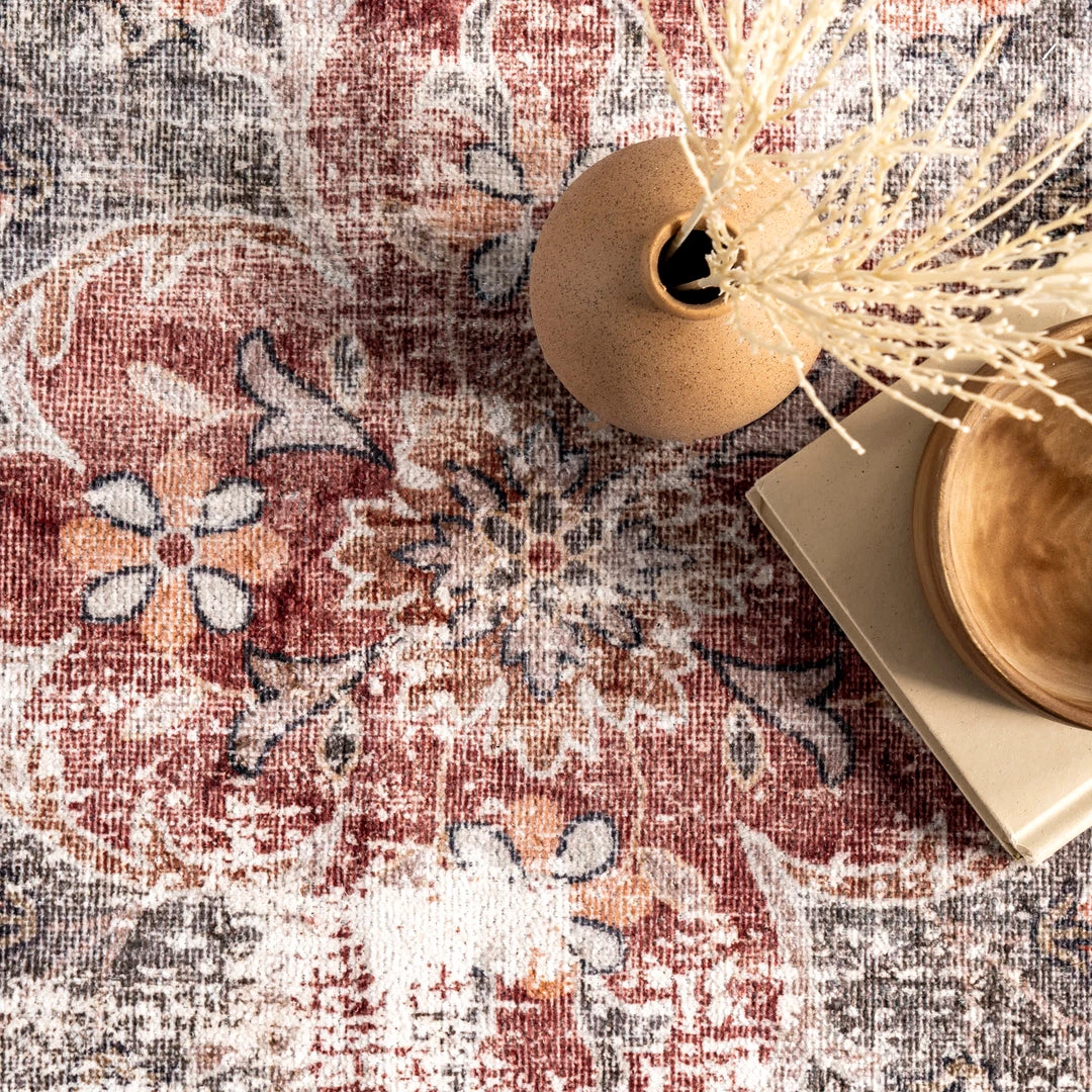 A classic look with a modern touch, this traditional Perisan machine washable area rug will complete any space in your home. Made from sustainably-sourced, premium recycled synthetic fibers, this washable area rug is made to withstand regular foot traffic. Our machine-washable collection is functional and stylish to keep up with your busy lifestyle. Simply roll your rug up, throw it in the washing machine, and you’re done! Create the home of your dreams with our pet-friendly and easy to clean area rugs.