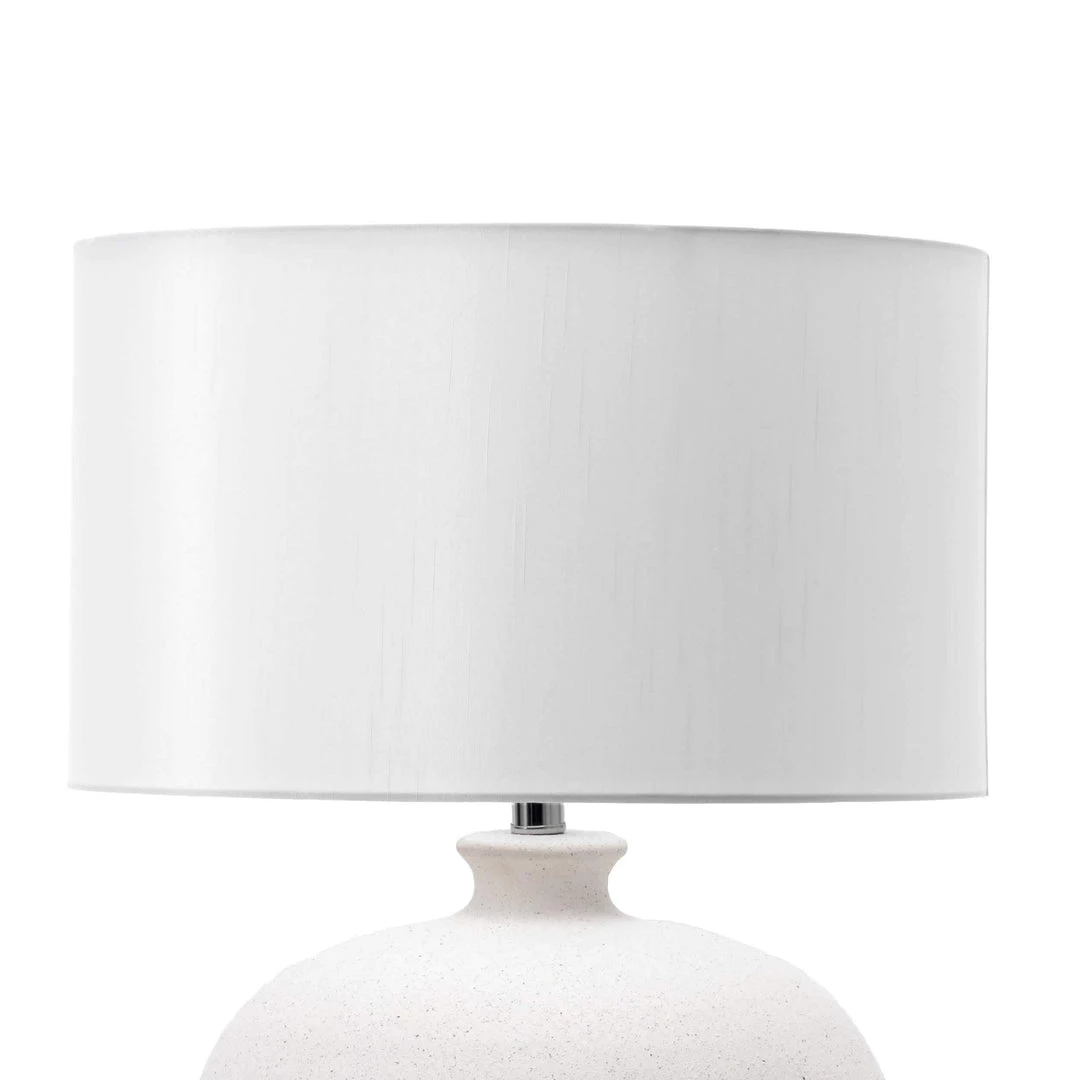 - A fabric drum shade spreads gentle light adding a cozy atmosphere to any space in your home