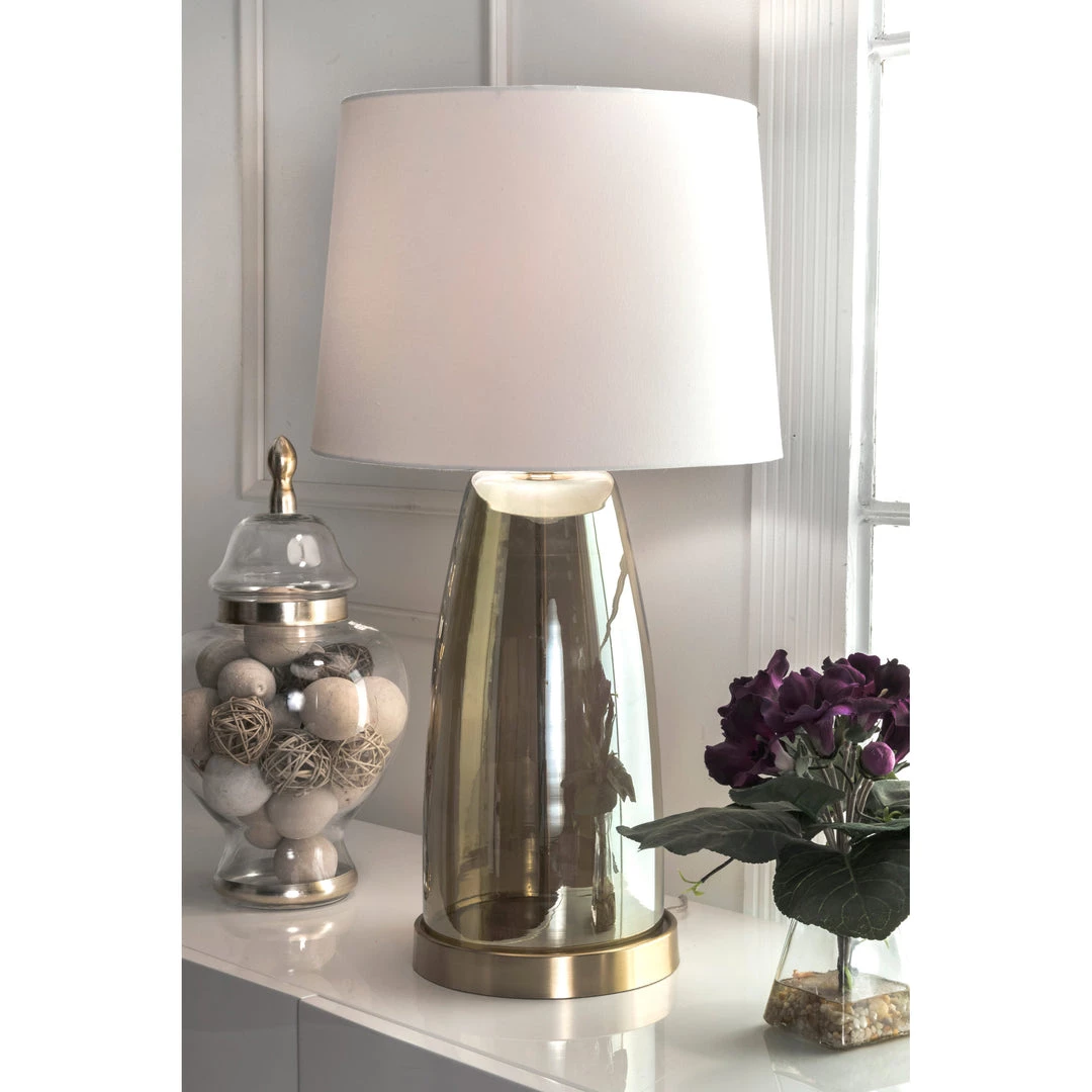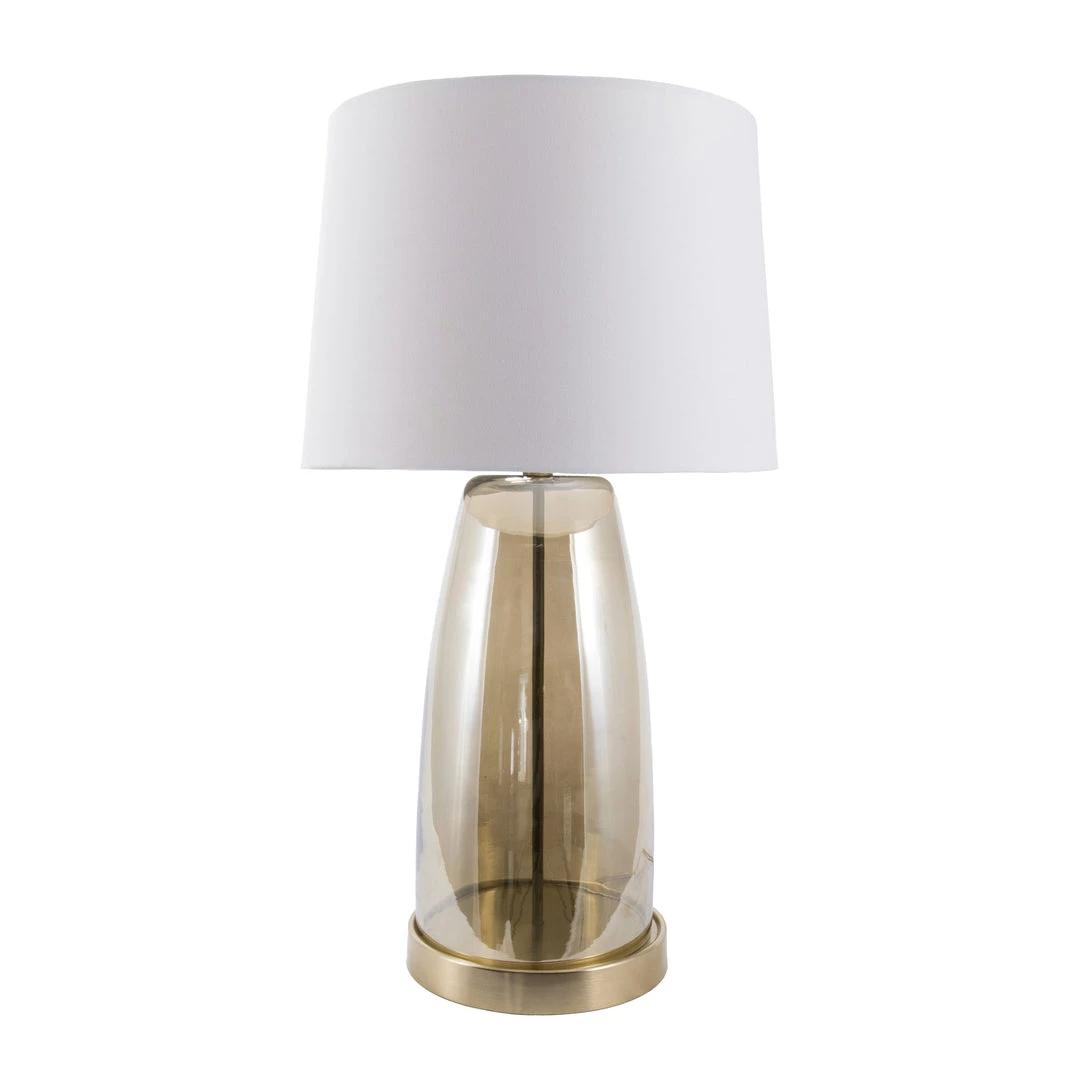 Illuminate your space with a touch of contemporary style. Warm and luminous, with a golden glass base, this lamp will make a refreshing and stylish addition to your space.
