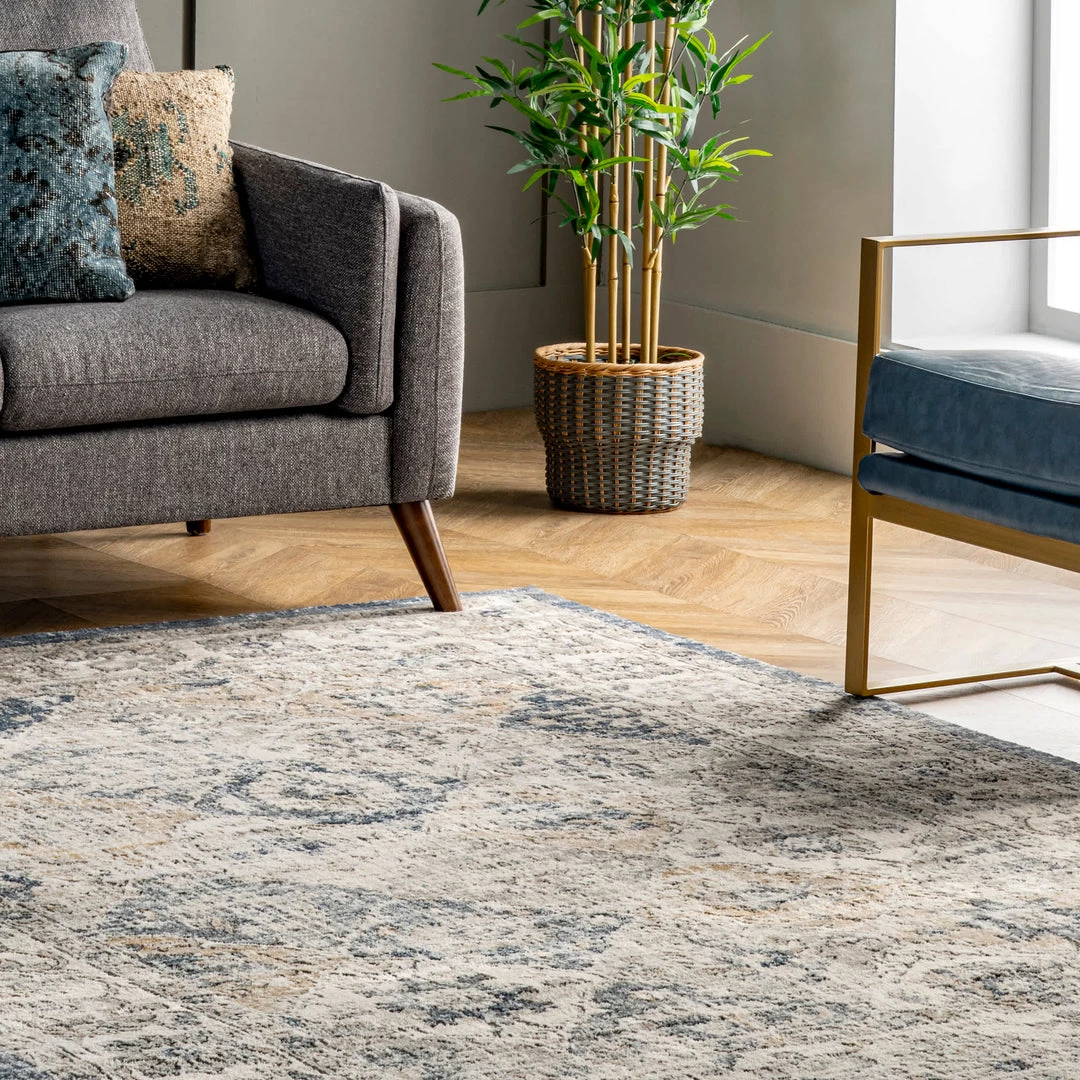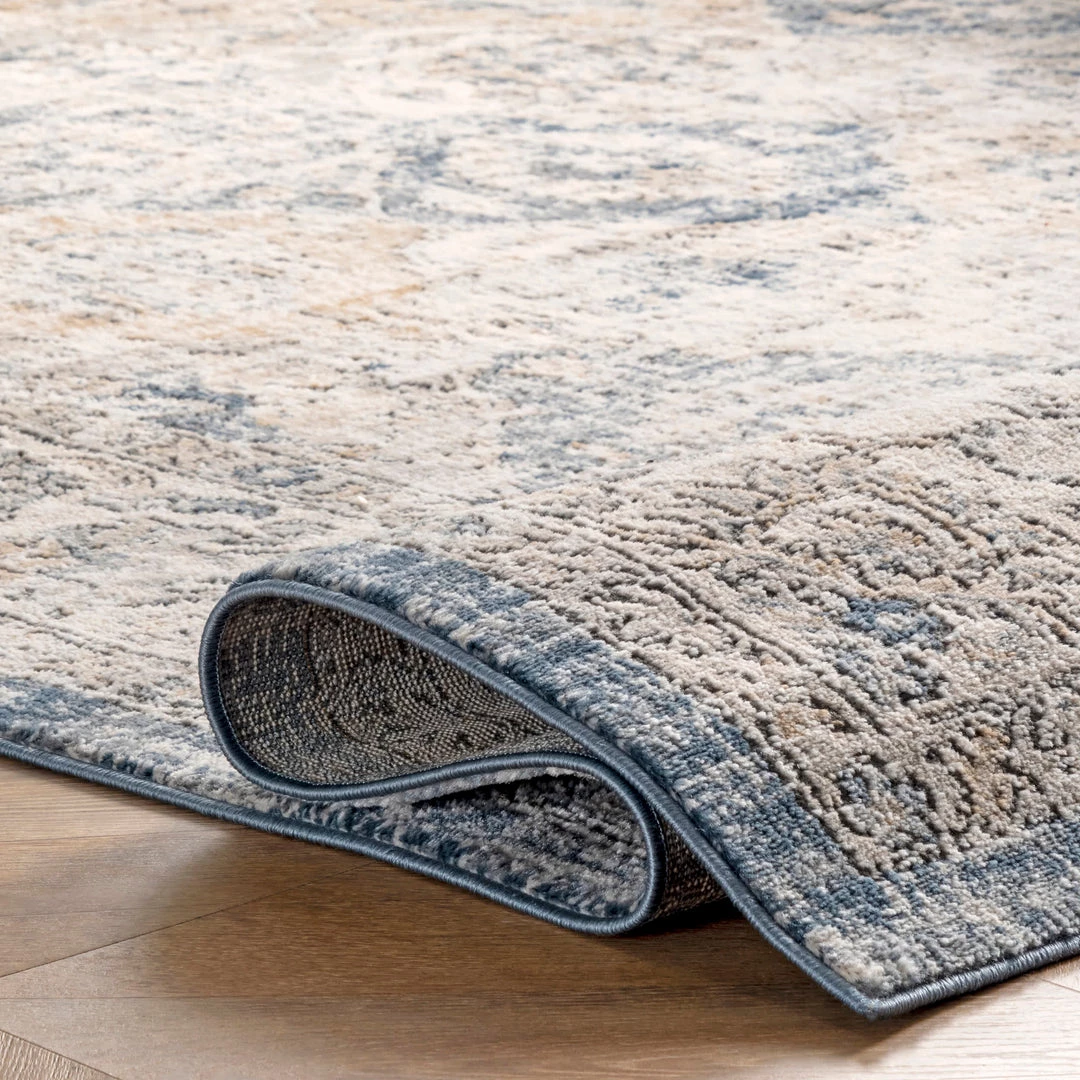 This beautiful distressed pattern gives off the look and feel of a rare elegant vintage find. You’ll appreciate the subtle hints of detail that will have you taking more than one glance at your new rug. Machine made of durable synthetic fibers that resist stains and fading.