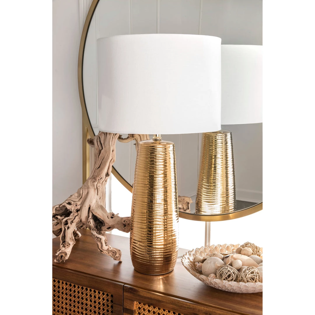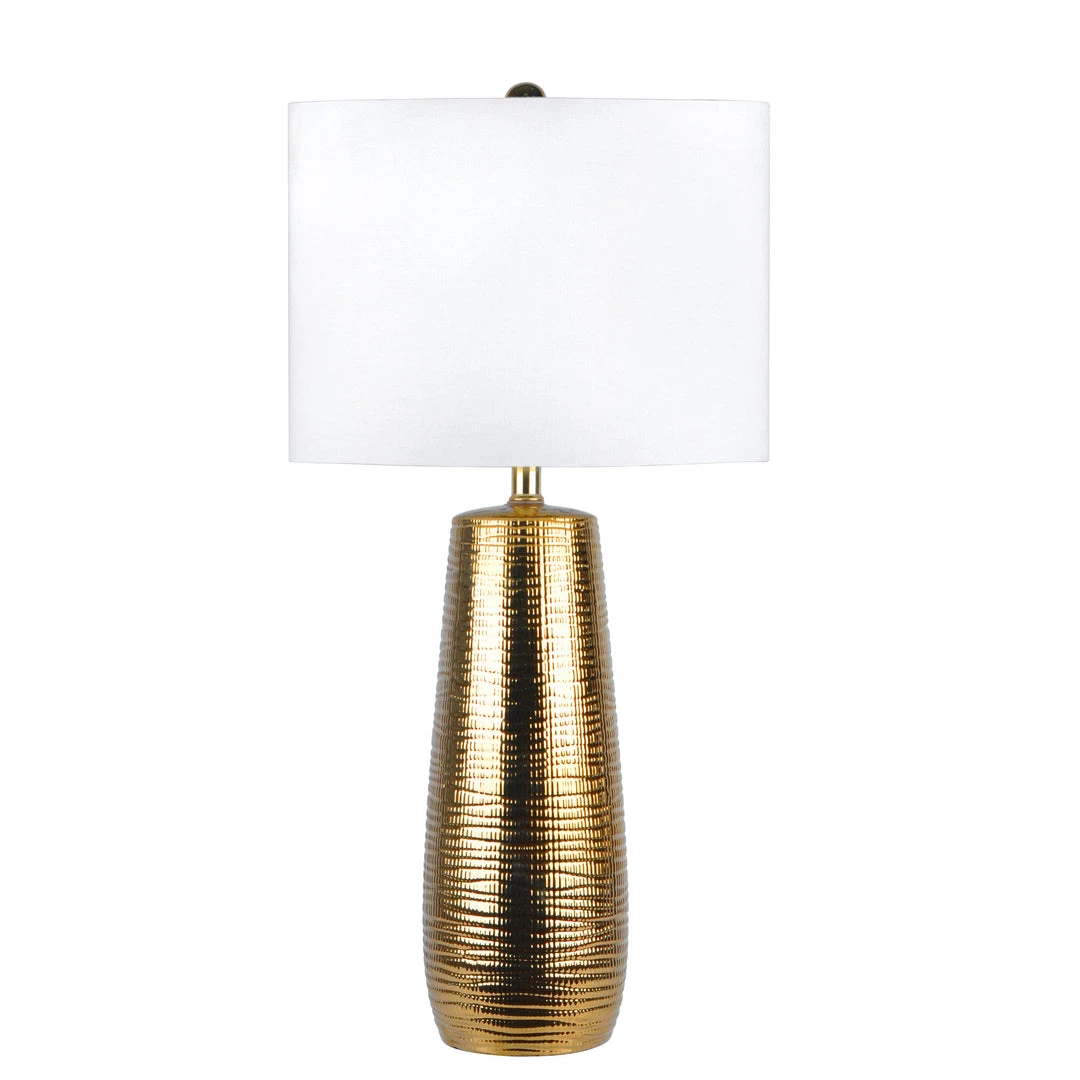 Illuminate your space with a touch of contemporary style. Warm and luminous, with a golden vase base, this lamp will make a refreshing and stylish addition to your space.