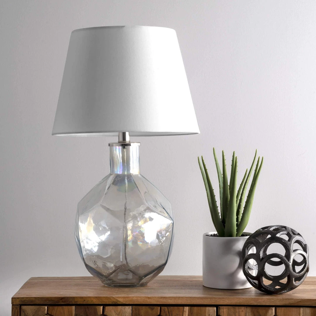 Illuminate any area in your bedroom, living room, and beyond with this modern table lamp from nuLOOM. A tapered cotton shade tops the lamp and diffuses the perfect amount of lighting.