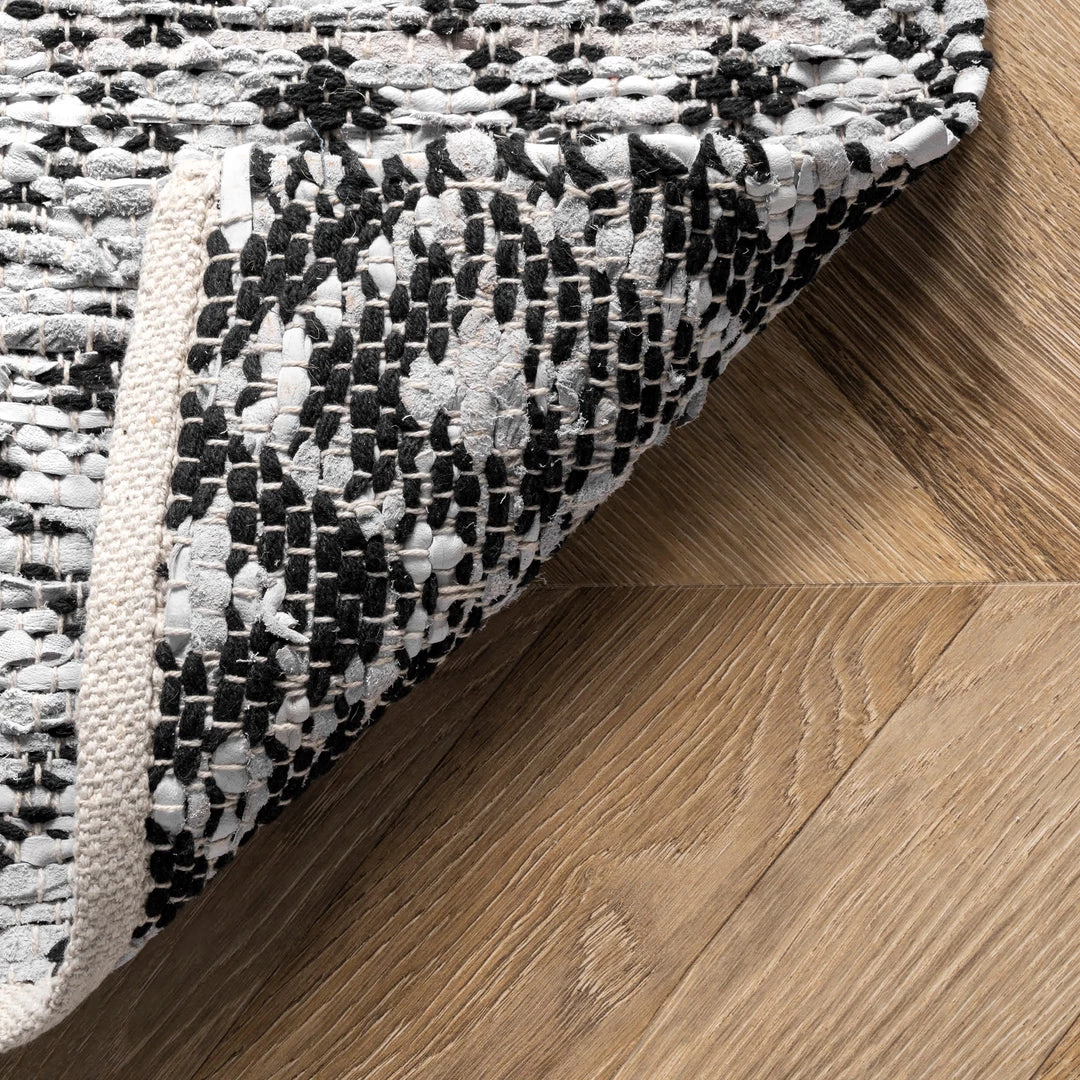 - This durable yet stylish leather and cotton rug is perfect for your living room, dining room, kitchen, or hallway