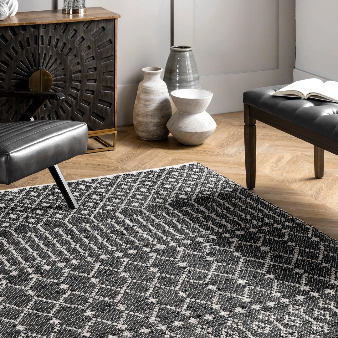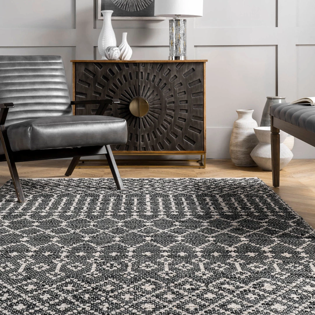 This flatweave leather and cotton rug gives off a warm feel and is soft underfoot. The geometric pattern and Moroccan-inspired style makes this rug a perfect addition to contemporary décor. Choose the colorway that best suits your design aesthetic.