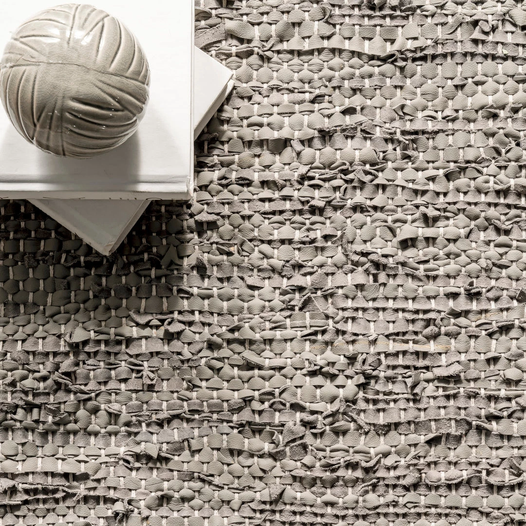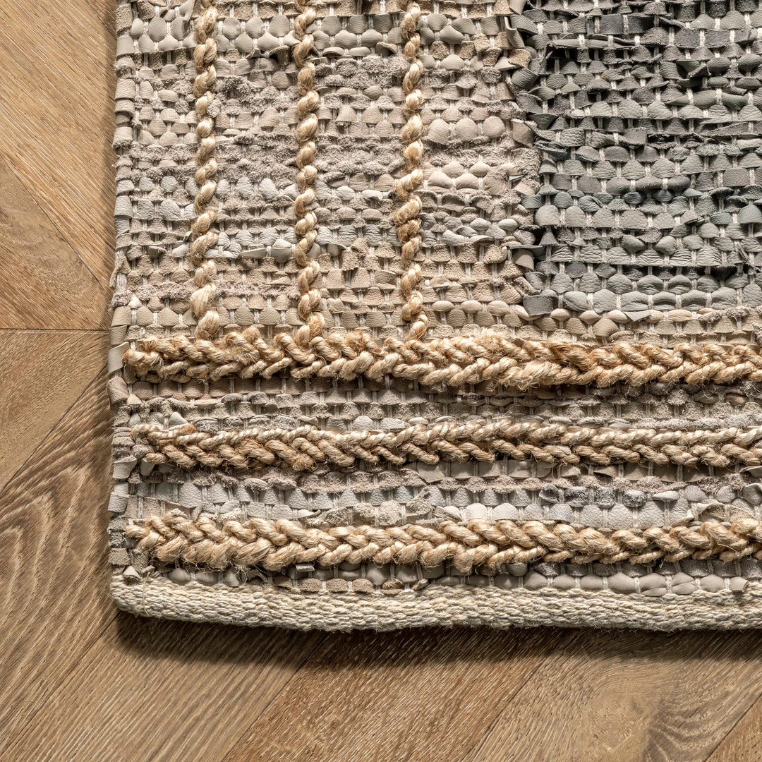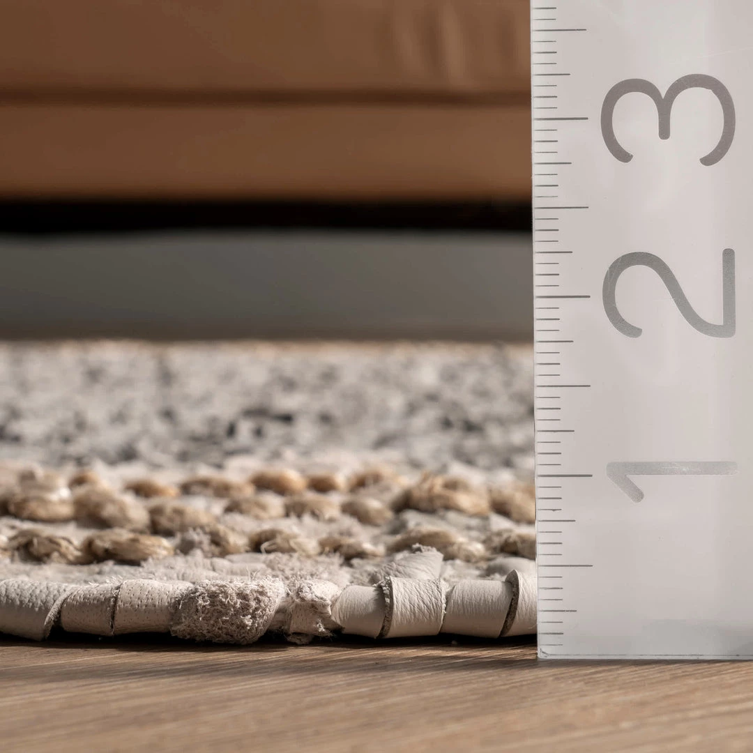 Simple yet unique and stylish this hand loomed leather and jute rug makes a great addition to any space. This rug gives off a natural yet warm feel and is soft underfoot.