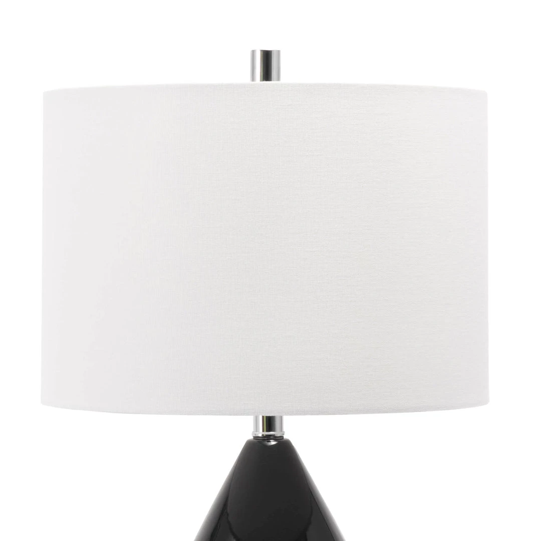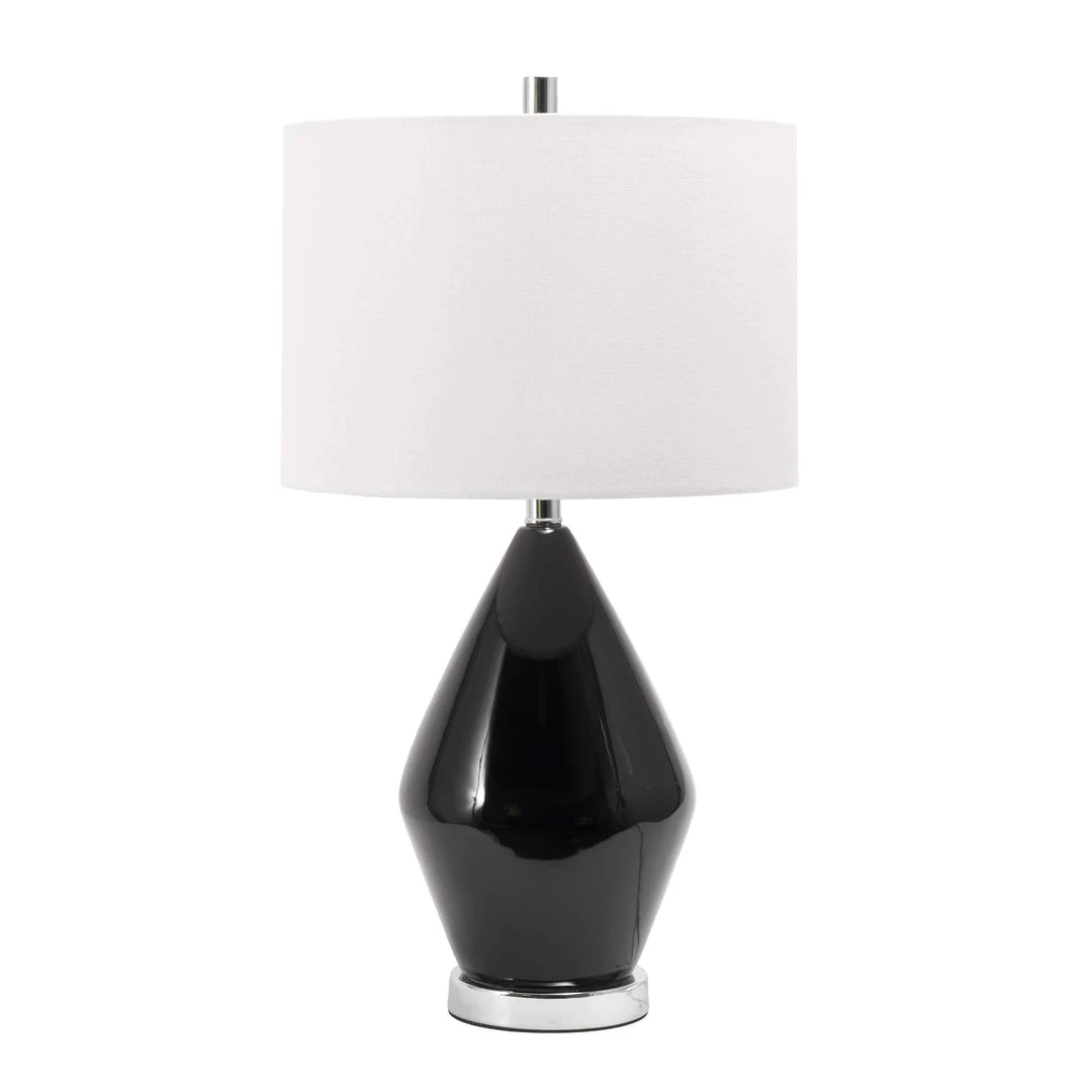 Let your room shine with the addition of this contemporary, 26-inch high, ceramic table lamp. It has a fabric shade that delivers ambient lighting and will add a vibrant flair to any room.