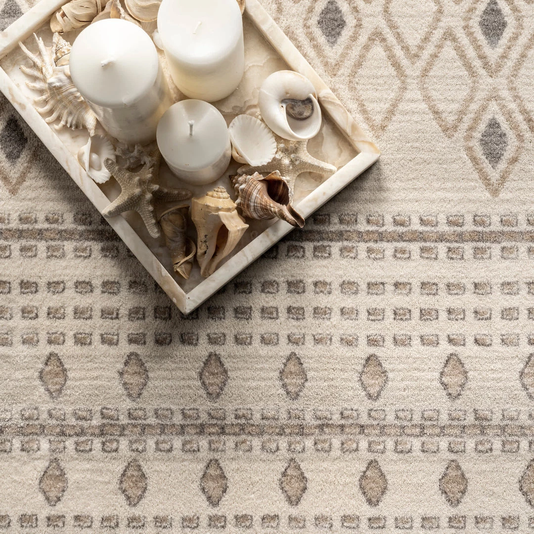 Elevate your space with transitional design and tribal motifs. The soft silky texture of this rug will instantly add a touch of luxury wherever it is placed. Machine-made from high quality synthetic fibers, this rug is sure to stand up to frequent foot traffic and daily use.