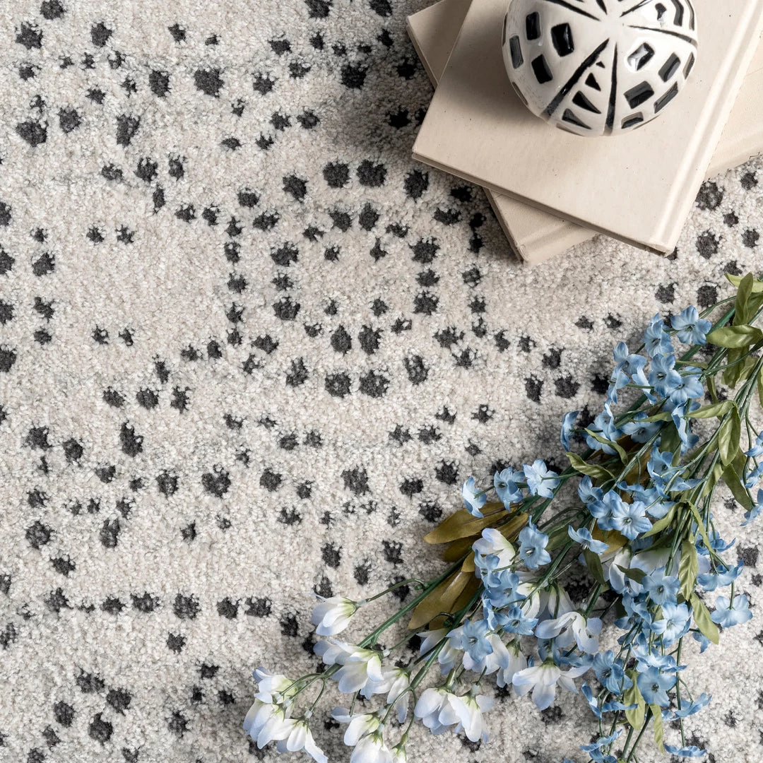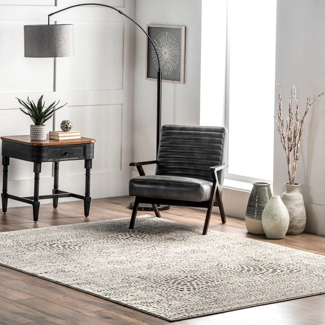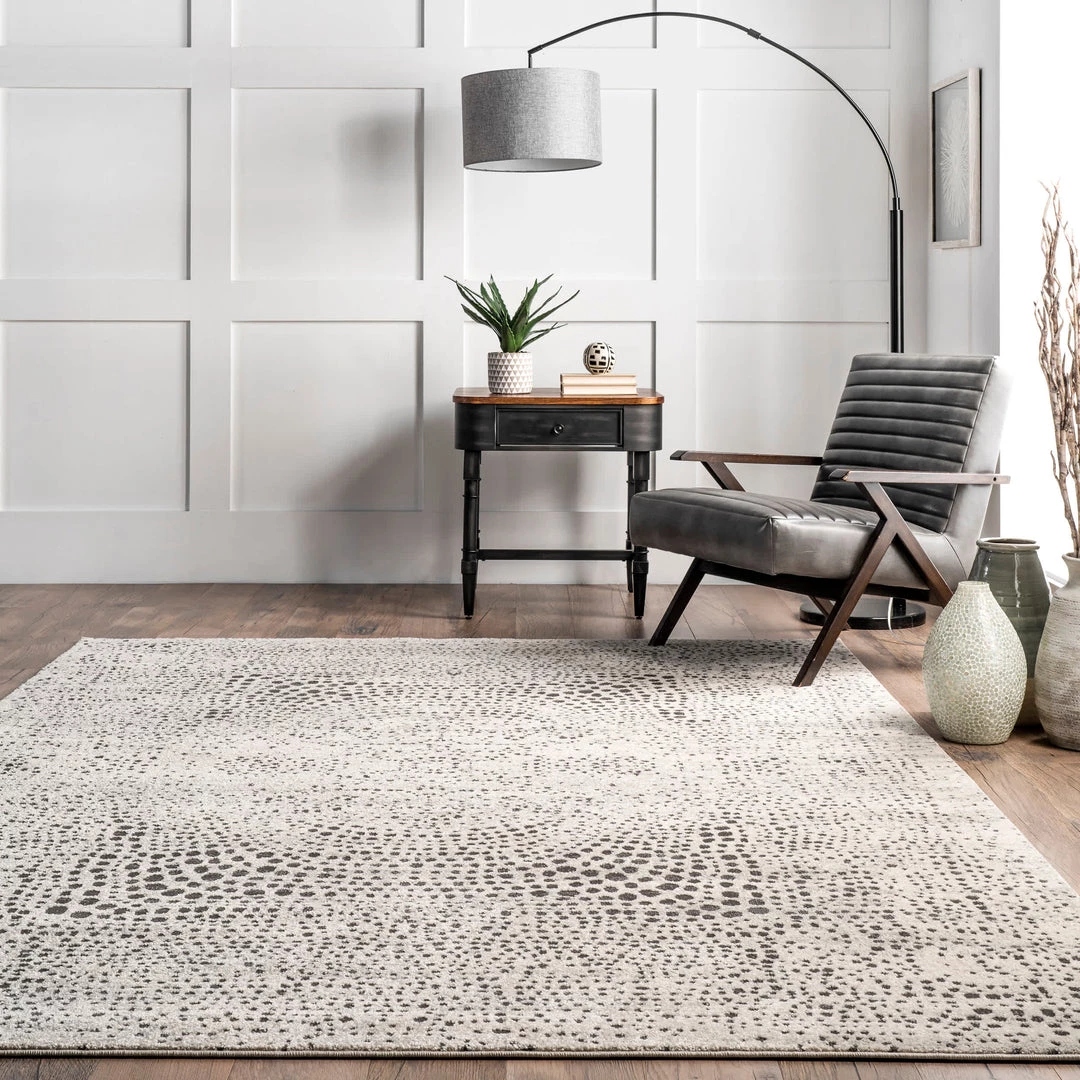 This pointillistic abstract area rug is a work of art you can walk on, making it a gorgeous statement in your home. Built to last and built to withstand frequent foot traffic, this rug is kid and pet friendly, and easy to clean.