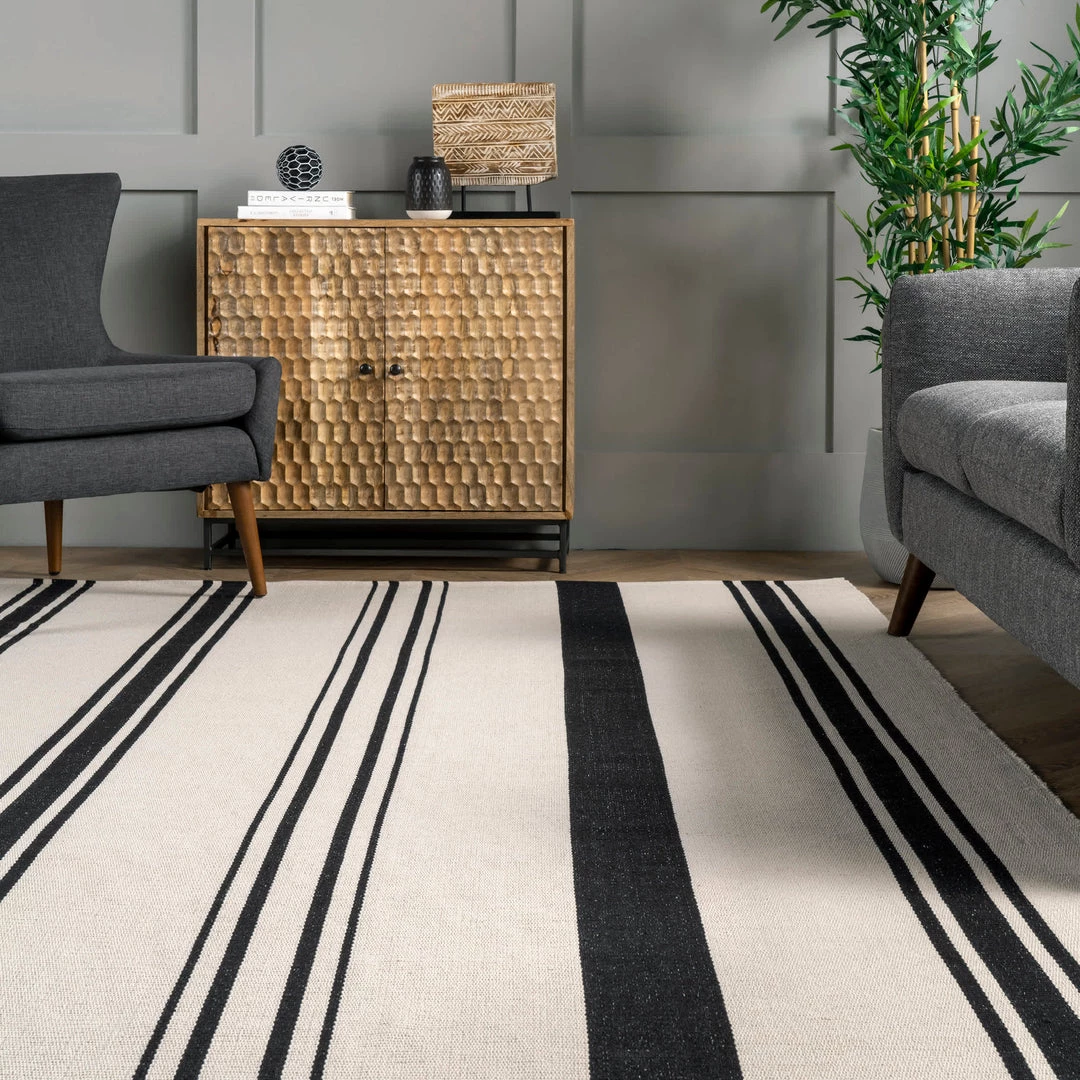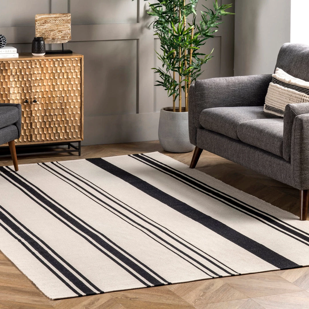 This 100% cotton flatweave rug is the perfect lightweight floor covering for any room in your home. This timeless simple striped pattern will make a beautiful addition to any existing contemporary decor.