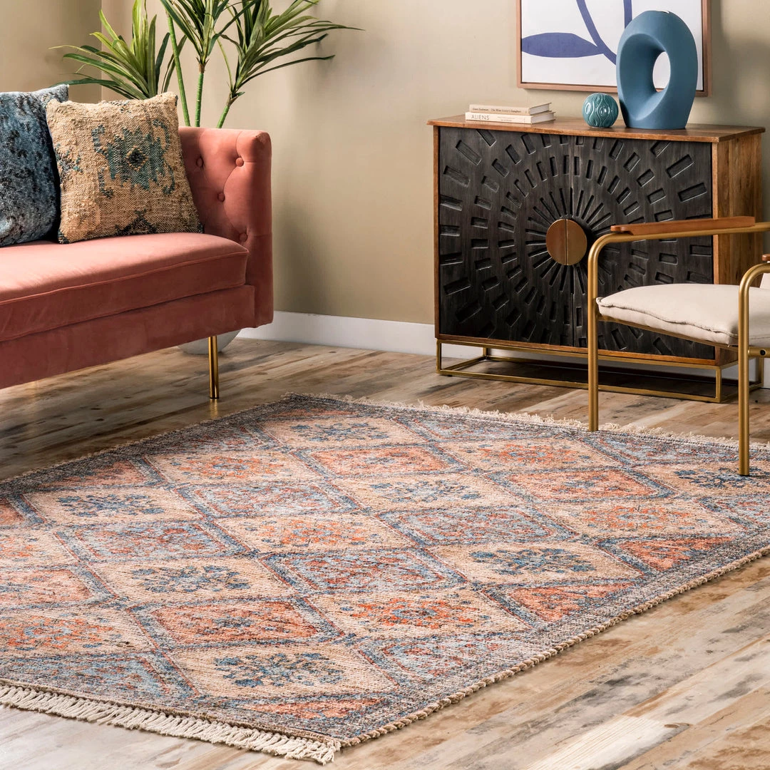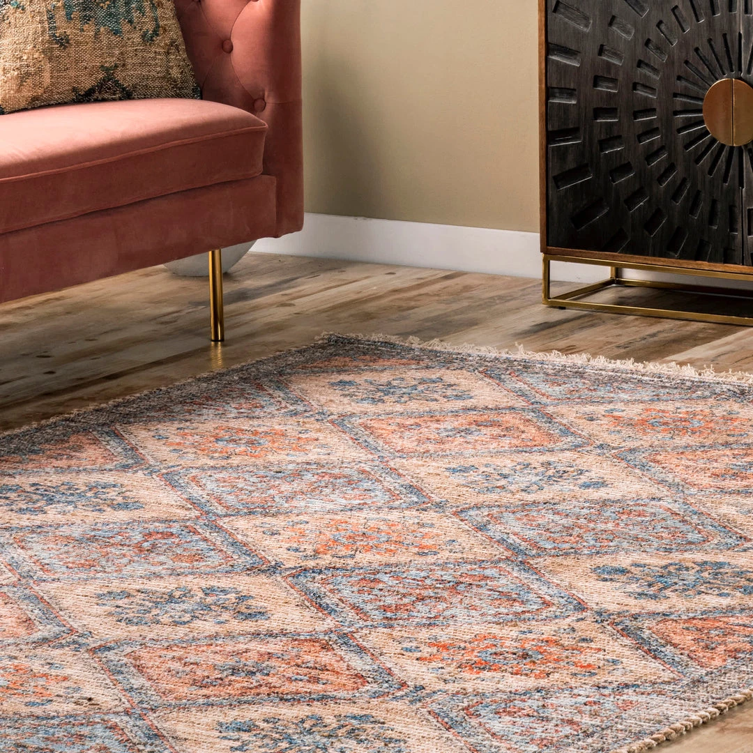 Artfully handwoven by artisans in India, this rug embodies classic Persian design. The blend of surface dyed jute and polyester fibers give this the look of a vintage market find.