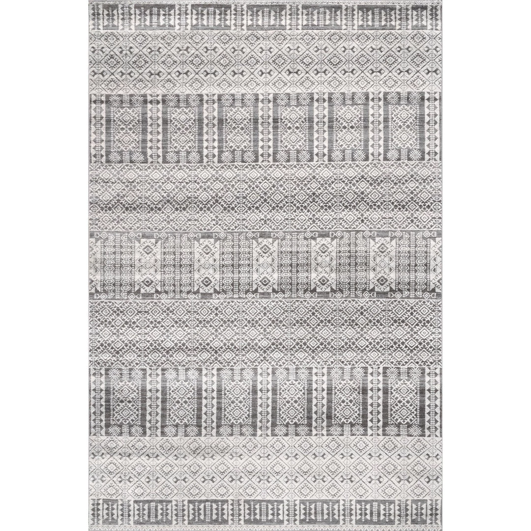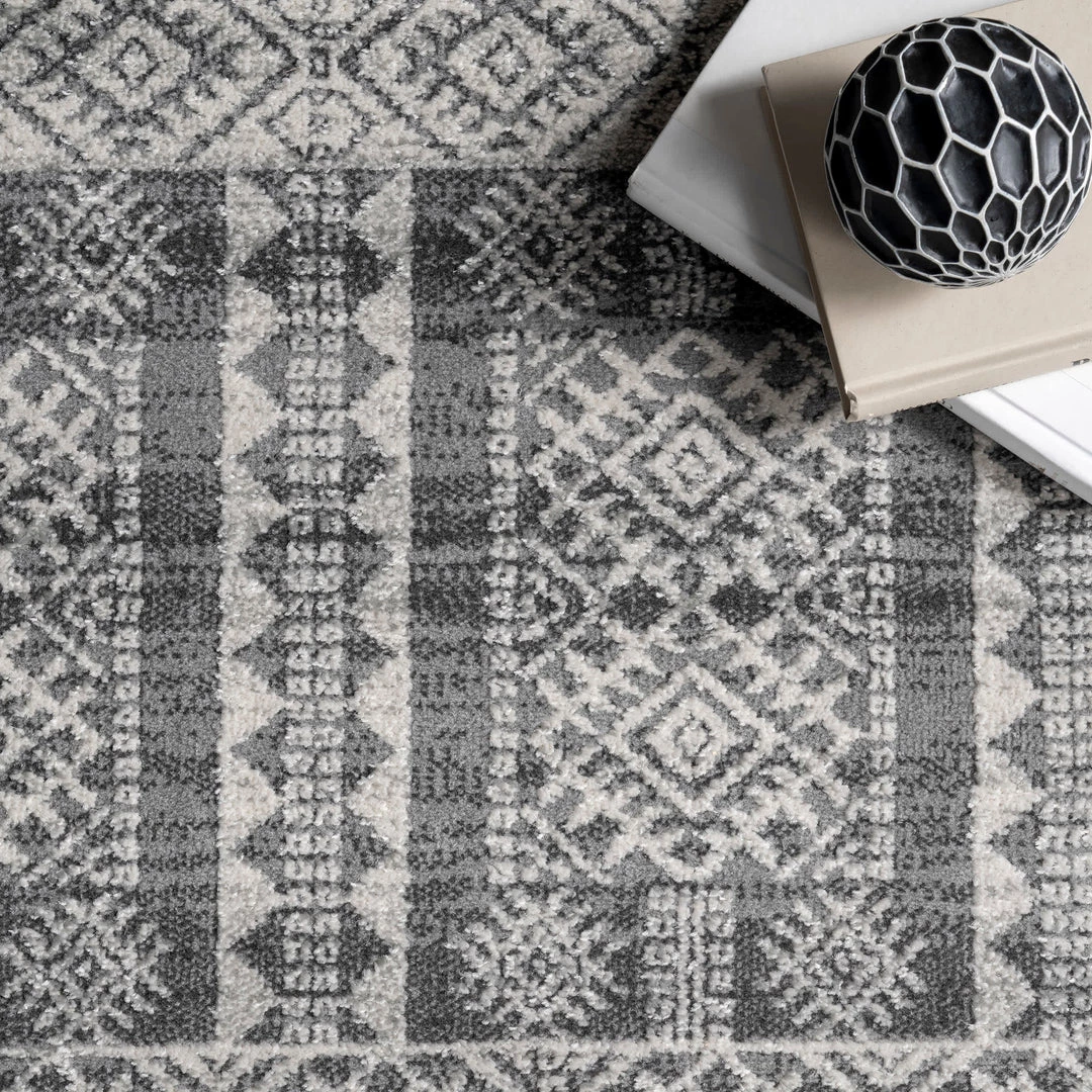 Make a statement with this global-inspired rug. The intricate geometric motifs make it an ideal enhancement to a modern design aesthetic. Durable and built to last, this machine-made floor covering is perfect for high traffic areas of your home.