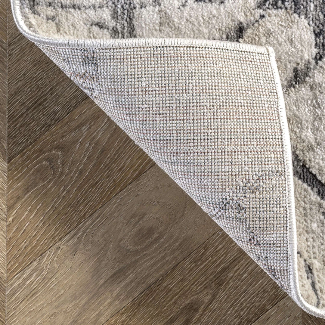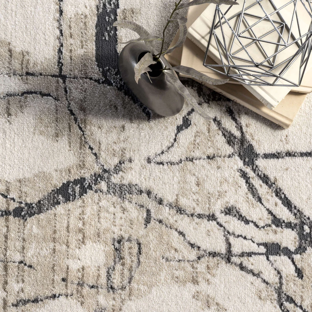 Add a touch of contemporary flair with this abstract marble floor covering. Machine made from synthetic materials, known for their durability and stain resistance.