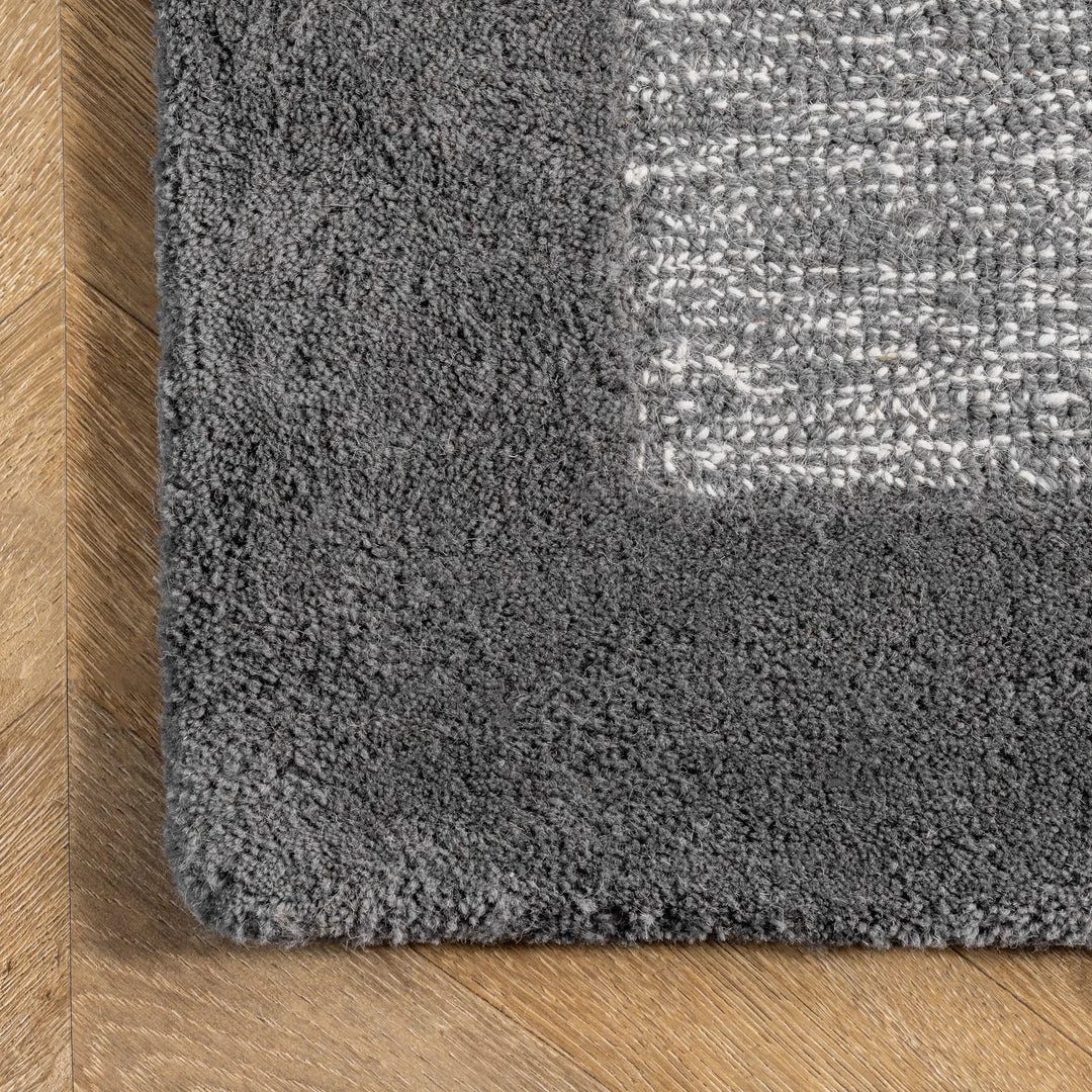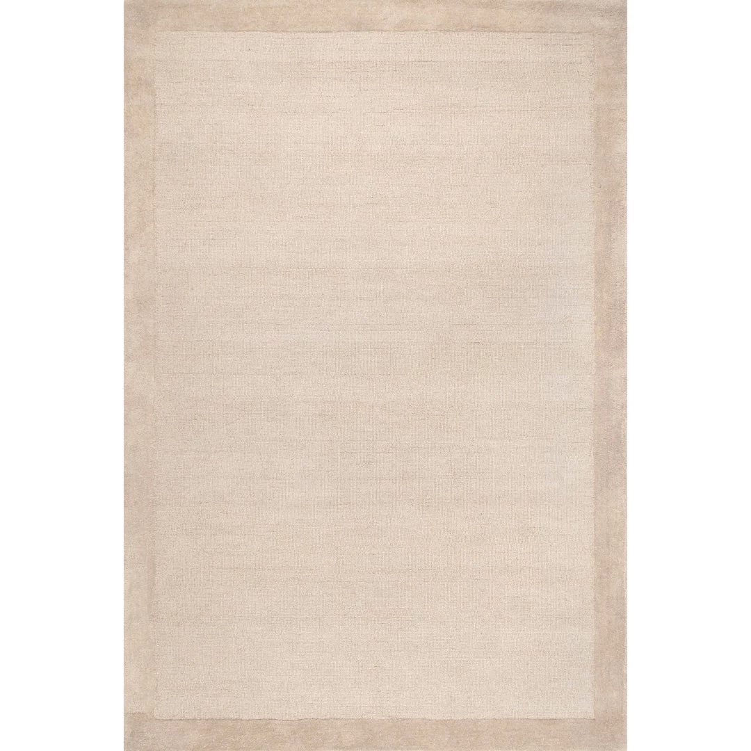 This handmade wool rug features a timeless monochrome border, that will add a touch of simplicity and elegance to any space.