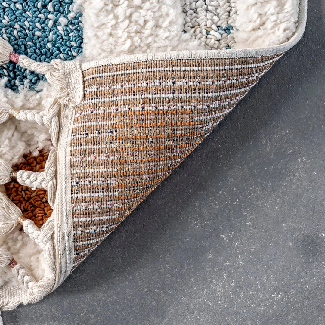 This simple yet adorable pebble like design is the perfect kids shag area rug for a nursery or any room that could use some flare! Braided tassels on the edges of the rug are paired with colorful ties to add a playful element. The combination of rich colors and incredibly soft feeling beneath your feet will make this the perfect addition in your home. Enjoy all of the little moments with our kid and pet friendly rugs.