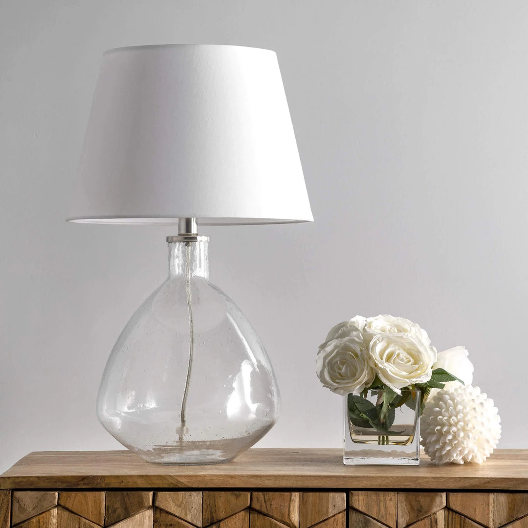Illuminate any area in your bedroom, living room, and beyond with this farmhouse table lamp from nuLOOM. A tapered cotton shade tops the lamp and diffuses the perfect amount of lighting.