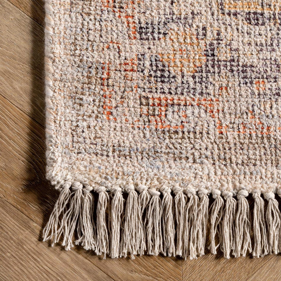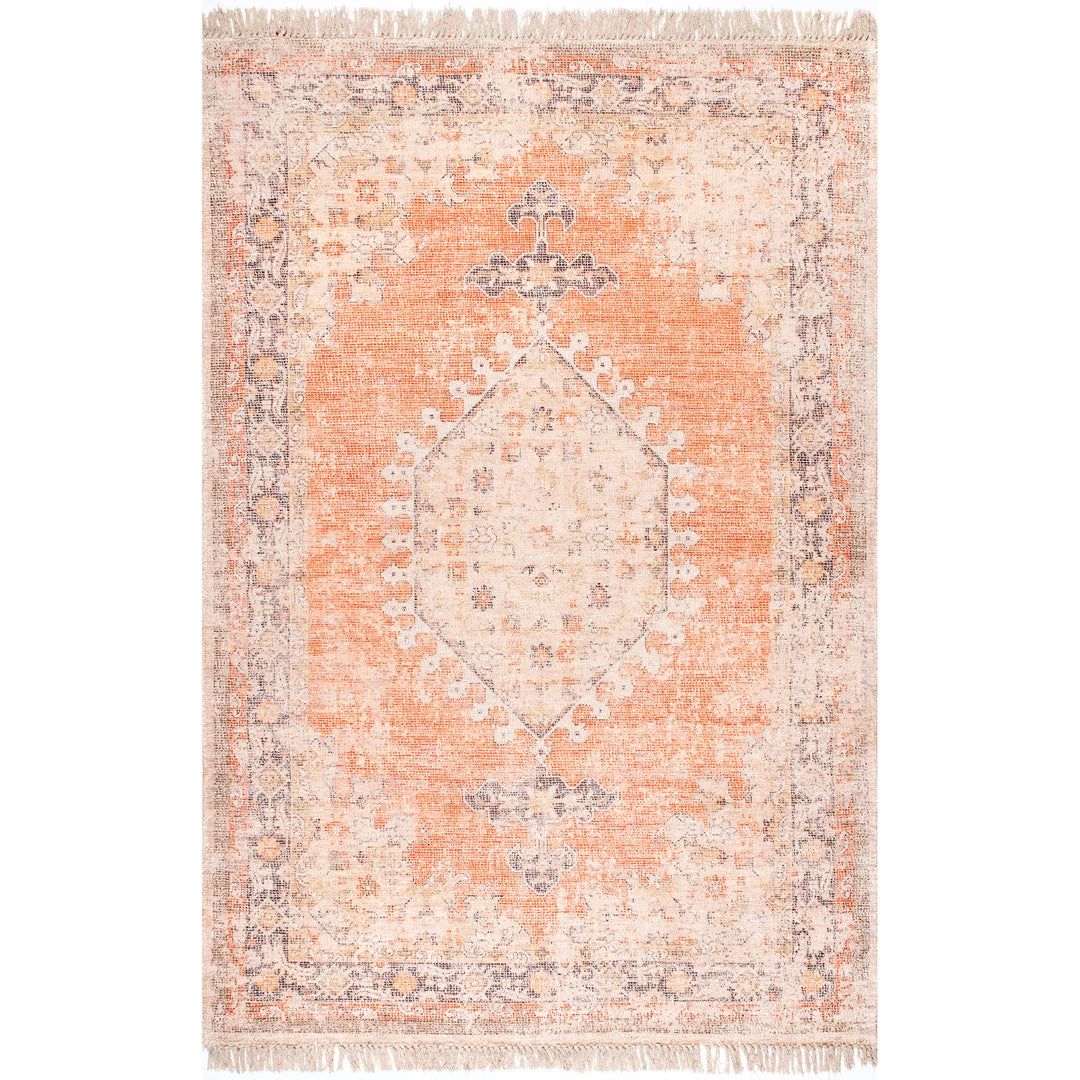 This high quality, handmade rug is made from a blend of natural fibers and synthetics. Refreshingly lightweight cotton and viscose mix with warm wool to complete a luxuriously soft texture underfoot. The purposefully distressed medallion design pops with a beautiful color palette. You are sure to fall in love with this floor covering.