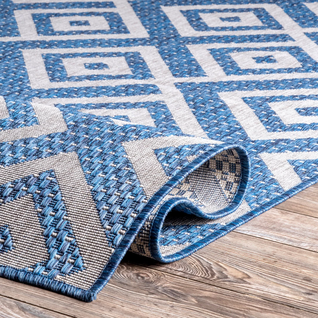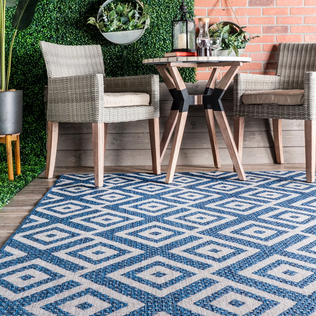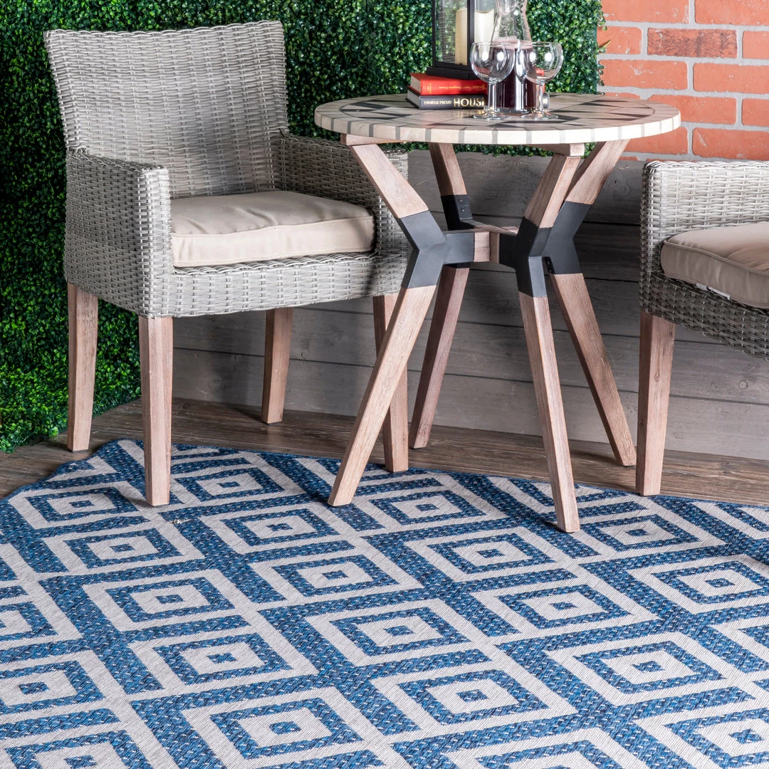 Whoever said beautiful floor accents are only for inside the home hasn’t yet met an indoor/outdoor rug. This beautiful bold geometric pattern is sure to make a statement and add the perfect touch to any space inside or outside your home.