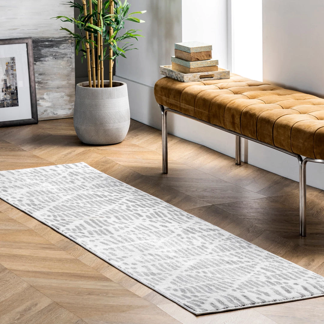 Add a touch of contemporary flair with this abstract design. The subtle fringe detail on either end is the perfect finishing touch to this unique pattern. Prized for their durability and ease of care, synthetic rugs are the perfect choice when spills and constant foot traffic are at the top of your mind