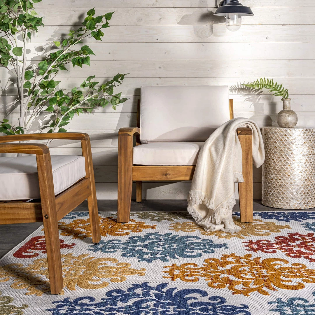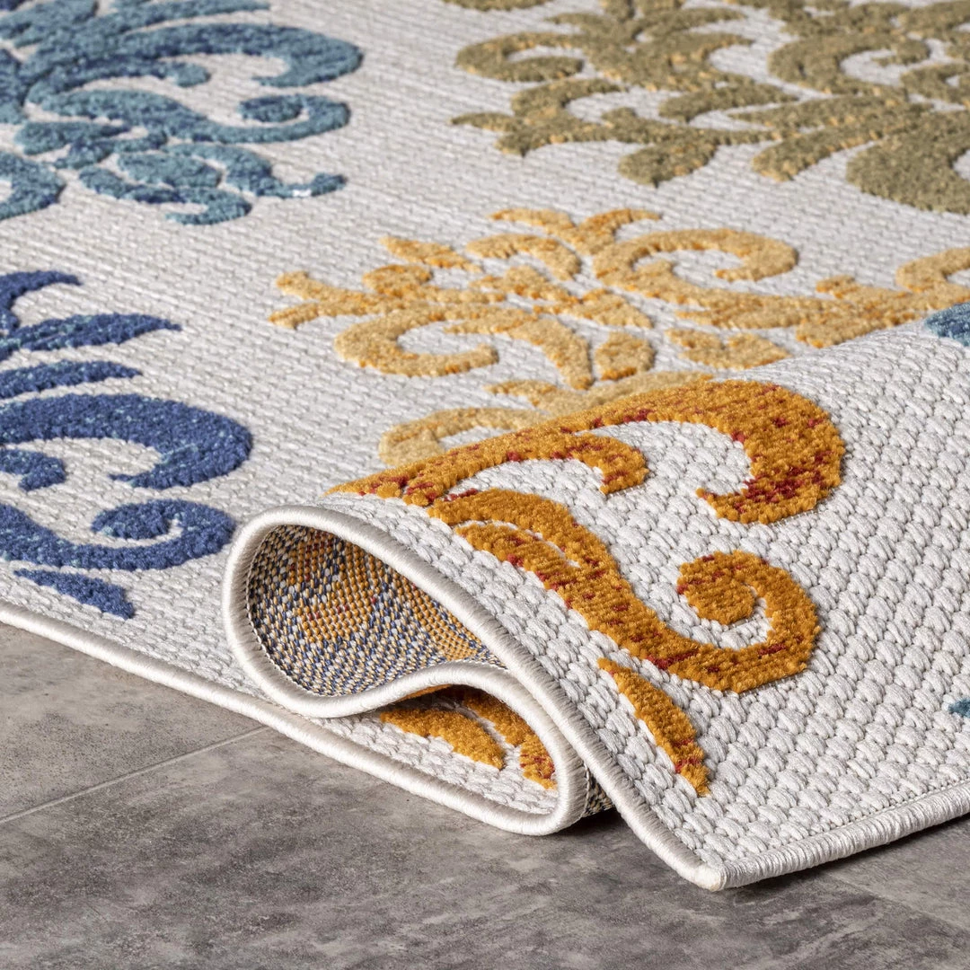 This dynamically textured pattern with highs and lows will make a wonderful statement inside or outside your home. This rug features a beautiful unique pattern and stunning color palette that will brighten up your space. Made from durable synthetic fibers this rug is built to last and will resist stains, fading, and mold or mildew.