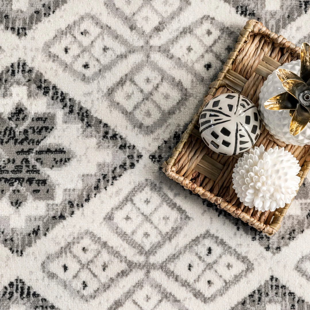 This unique pattern resembles the look of classic Moroccan tribal textiles with a stunning modern twist. Machine-made in Turkey of polypropylene, this rug is built to last and built to withstand frequent foot traffic. Easy to care for and maintain this rug is kid and pet friendly.