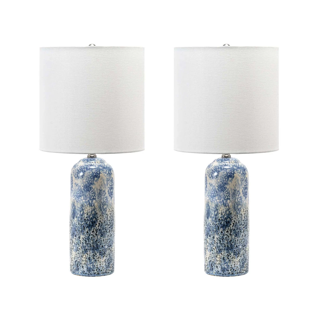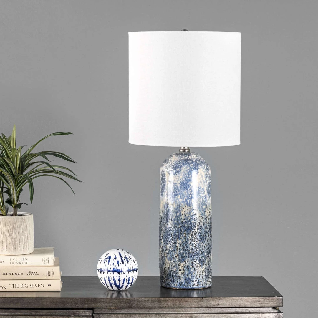 Illuminate your space with a touch of contemporary style. Warm and luminous, with a beautiful modern ceramic base, this lamp will make a refreshing and stylish addition to your space. A tall pillar shaped silhouette allows this lamp to fit easily on your table, desk, or nightstand.