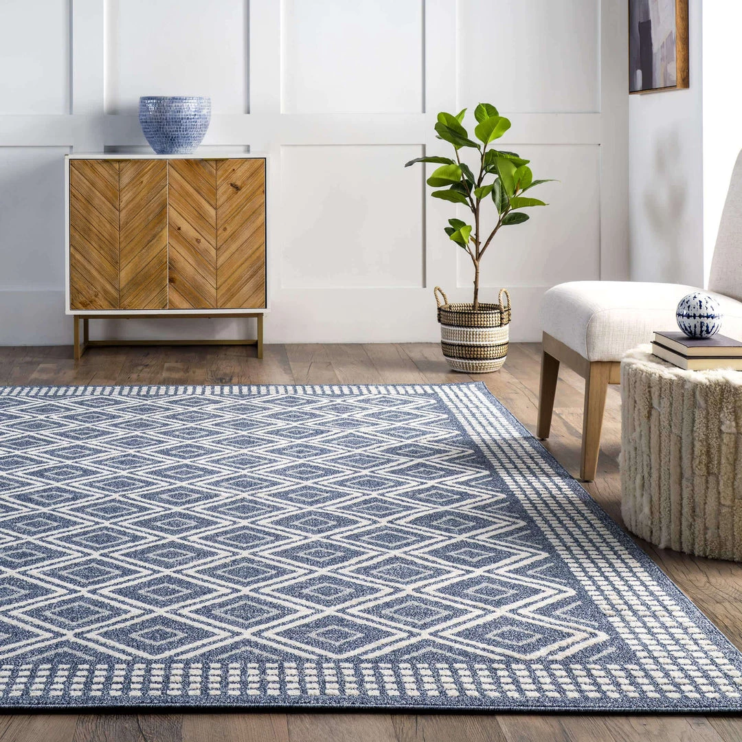 This contemporary geometric area rug is a work of art you can walk on, making it a gorgeous statement in your living room, dining room, kitchen or hallway. Built to last and built to withstand frequent foot traffic, this rug is kid and pet friendly, and easy to clean.