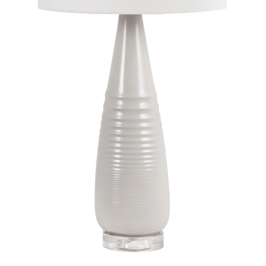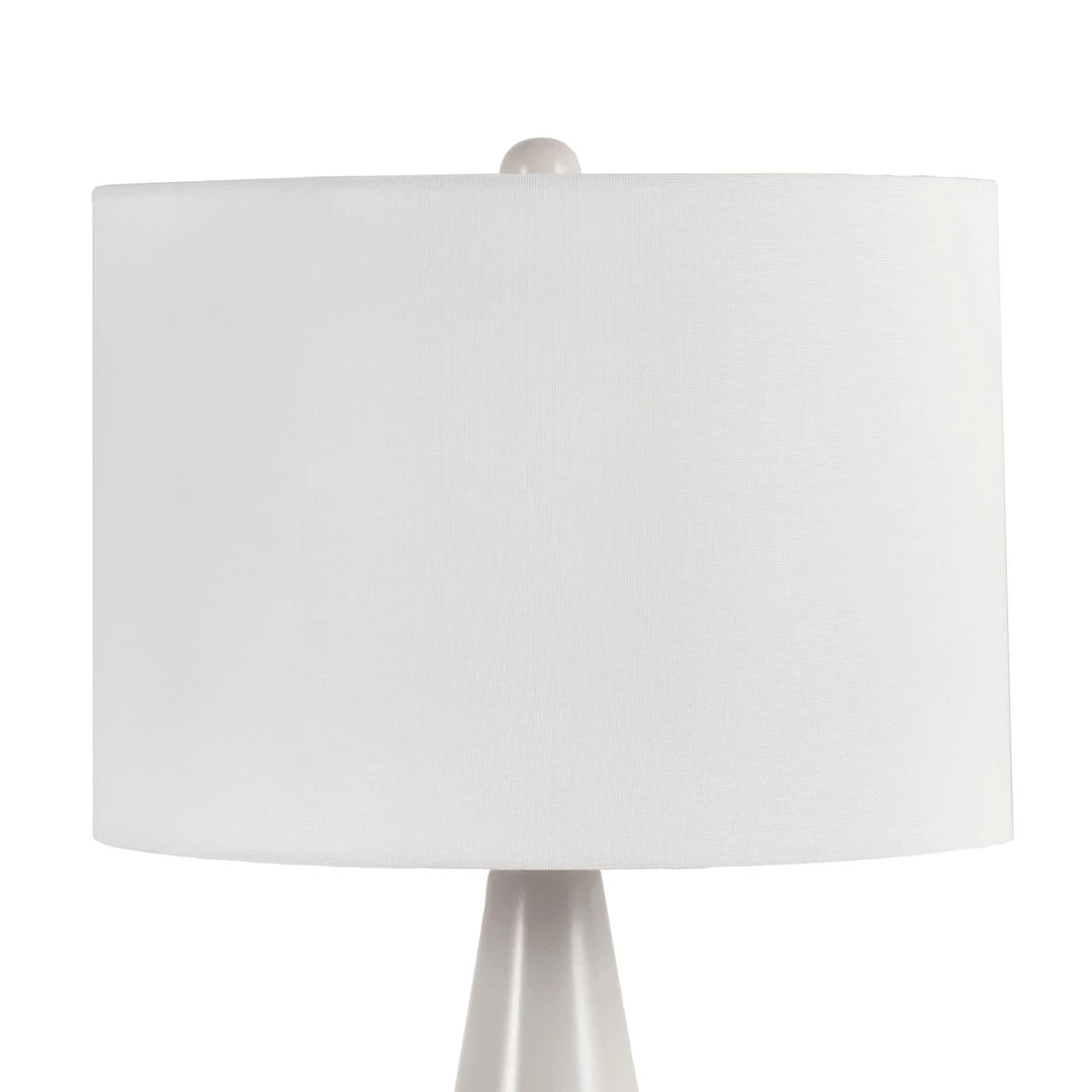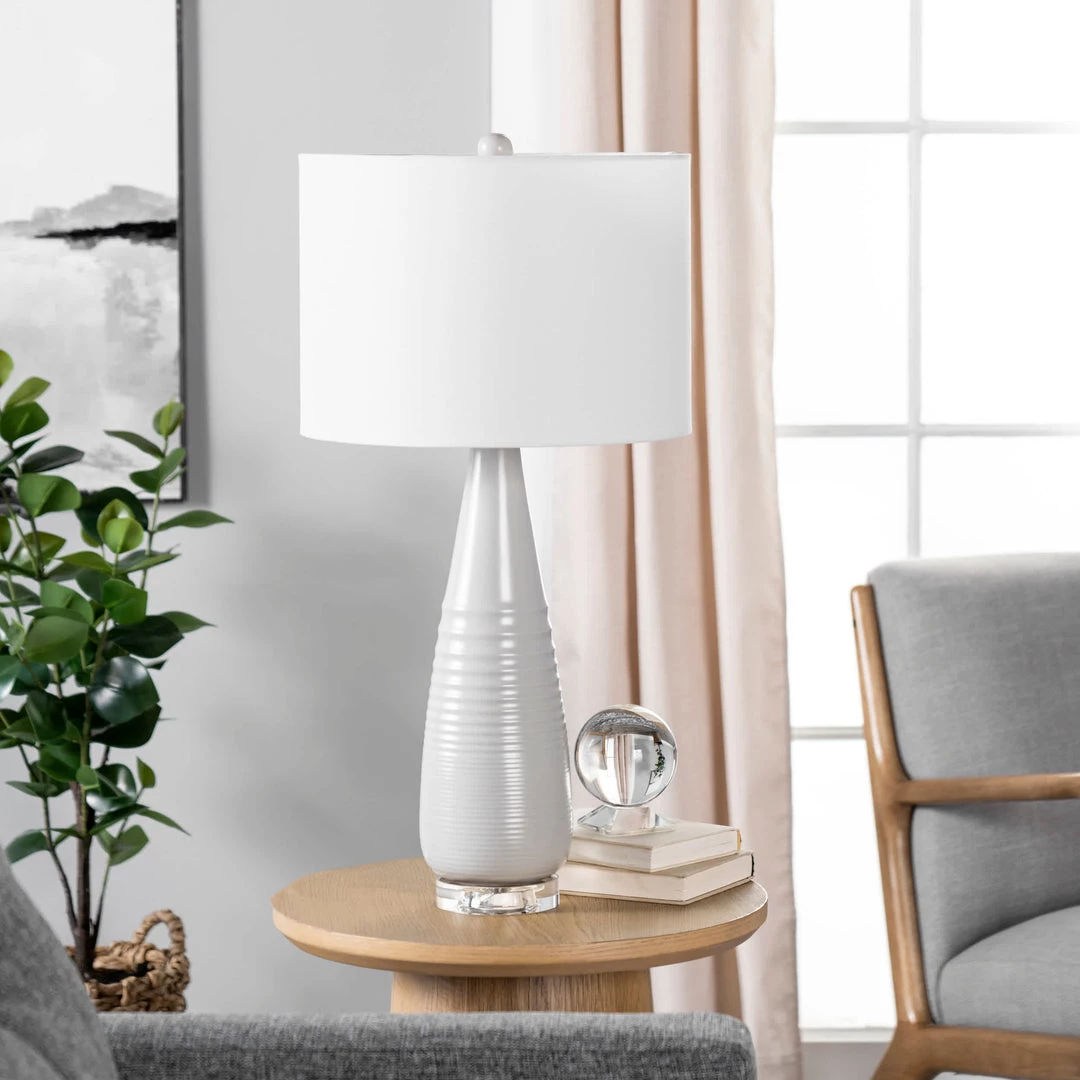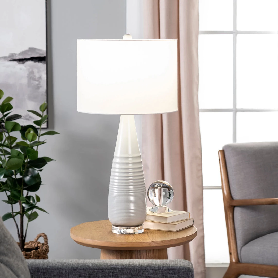 Illuminate your reading spot while adding a sophisticated accent with this tall table lamp. White linen fabric lends classic appeal to the drum shade, and a slender, ceramic base in light grey adds modern flair. Perfect for a living room end table or a bedroom nightstand, this one-light table lamp adds targeted lighting and decorative value.