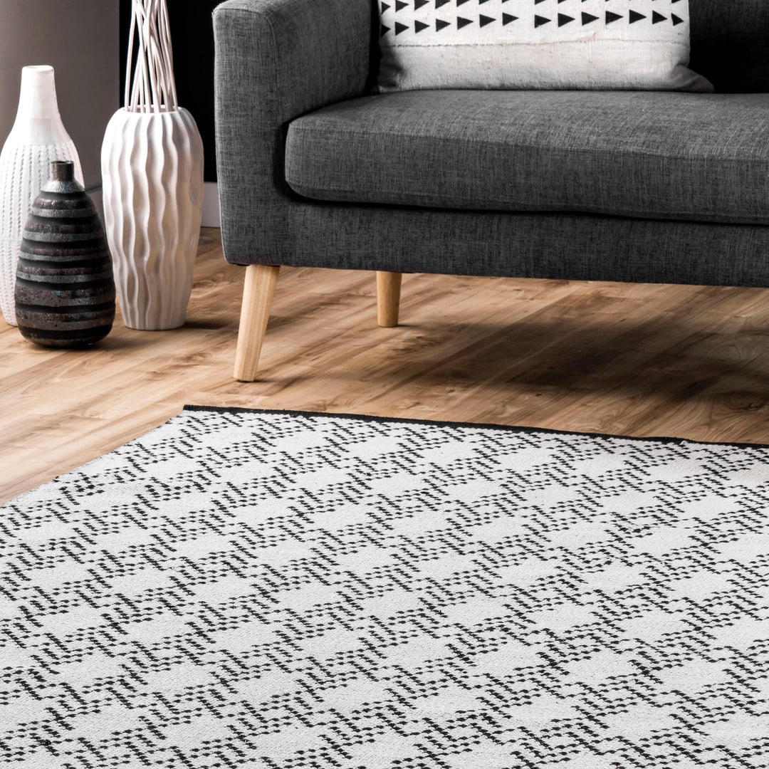 Enjoy the fresh look and feel of this geometric pattern. This lightweight cotton area rug is sure to make a statement in any room.