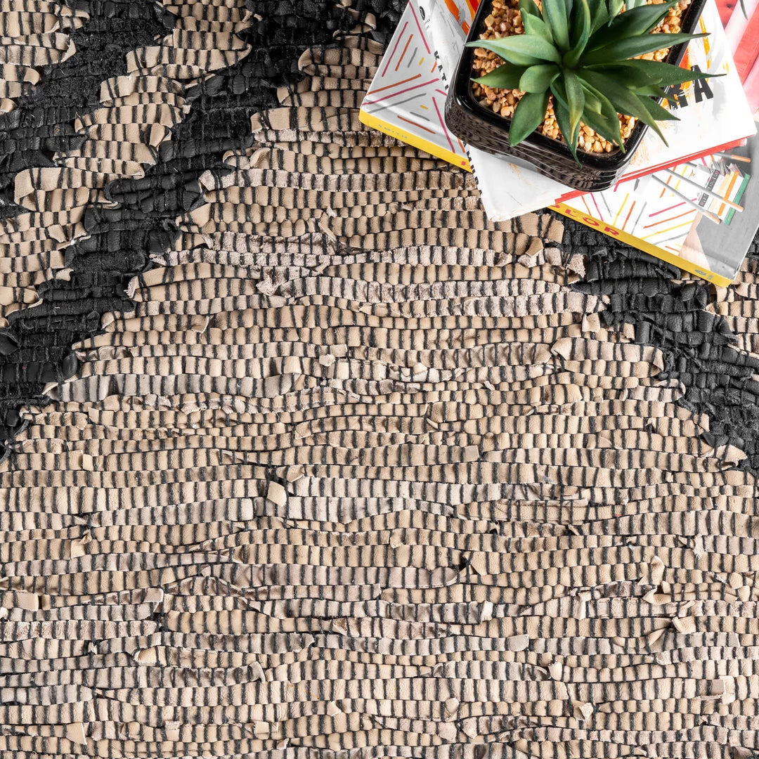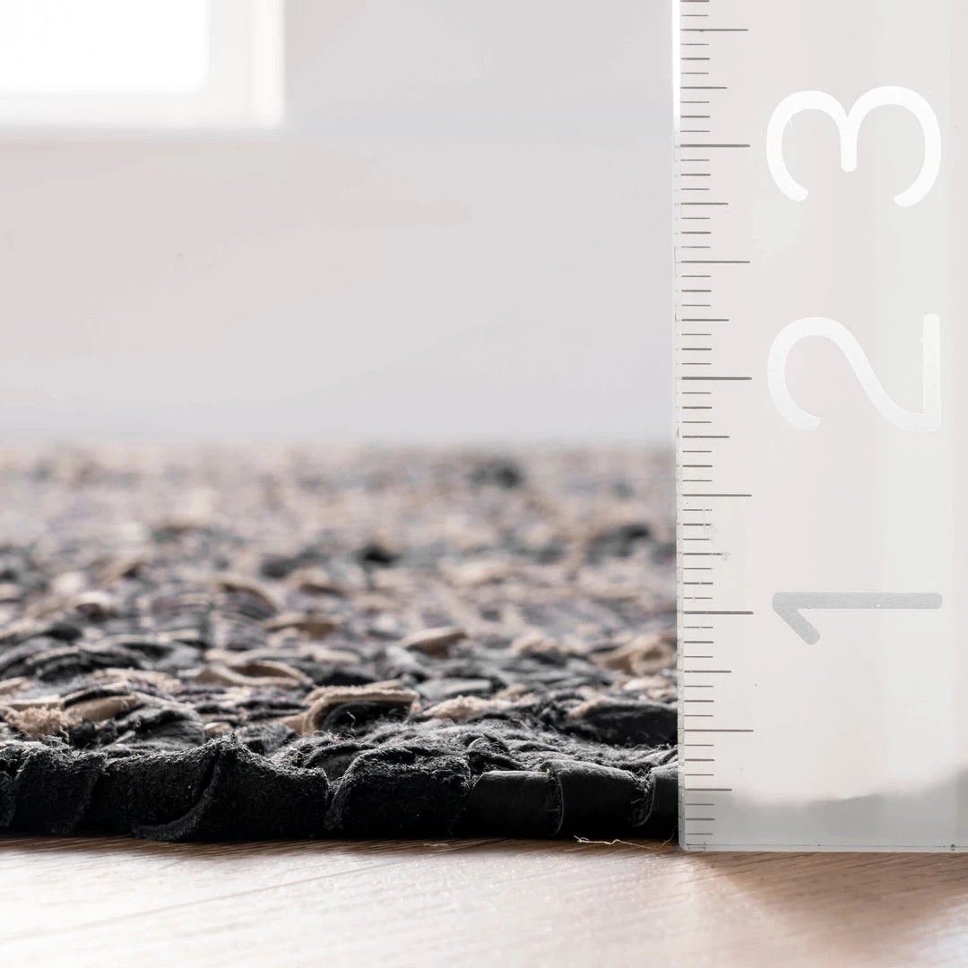 Simple yet unique and stylish this handwoven leather and rug makes a great addition to any space. This rug gives off a natural yet warm feel and is soft underfoot.