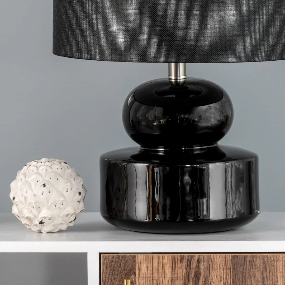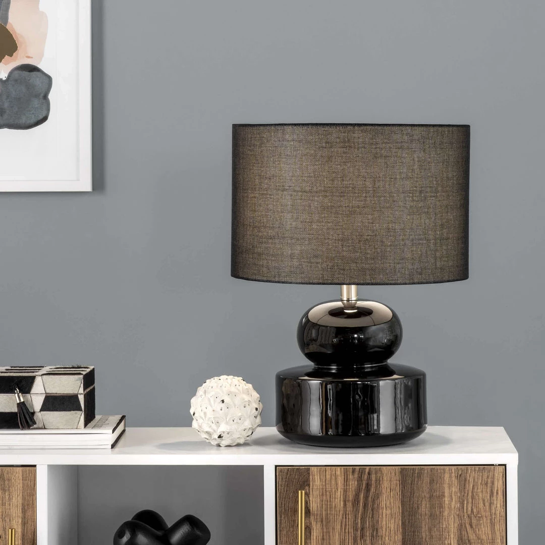 Warm and luminous, with a contemporary gourd base, this lamp will make a refreshing and stylish addition to your space. The cloth shade diffuses the light beautifully for ample illumination, and the ceramic body provides a sturdy base.