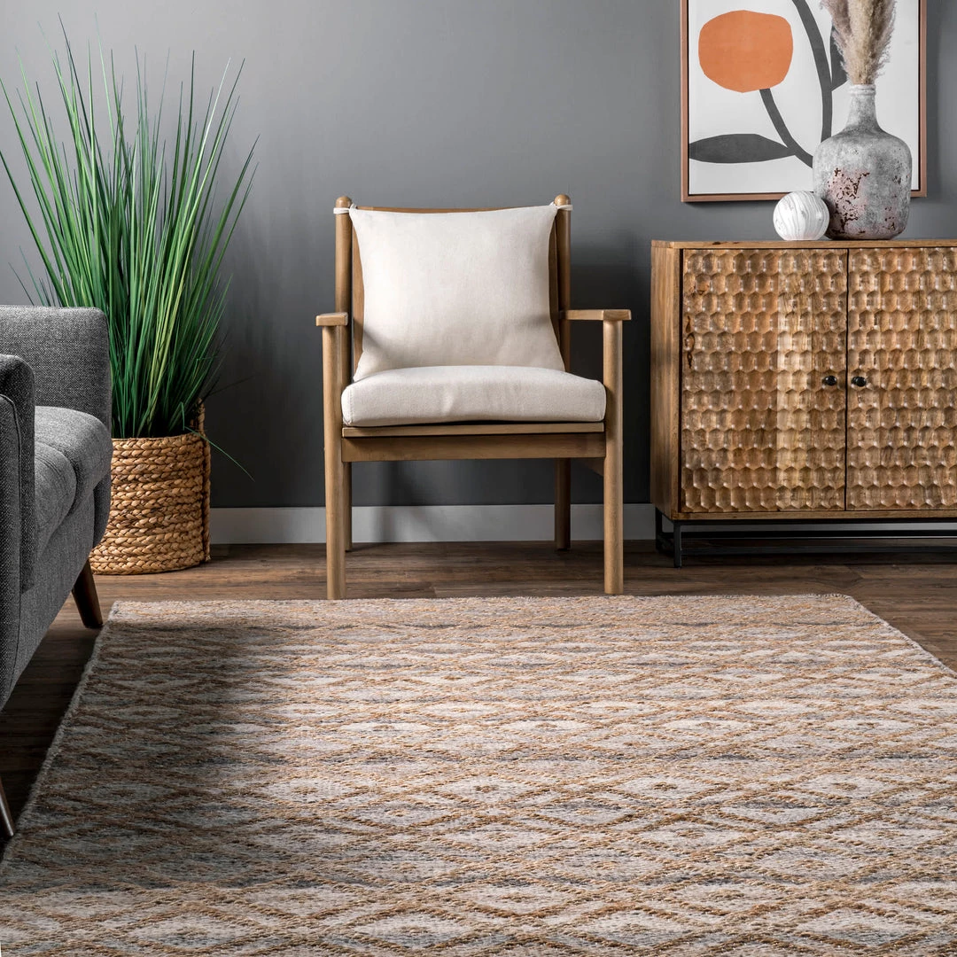 This natural jute and wool rug features a unique geometric pattern that will flawlessly fit into existing contemporary decor. Artfully crafted by artisans in India this rug, the intricate weave and ornate pattern will not go unnoticed.