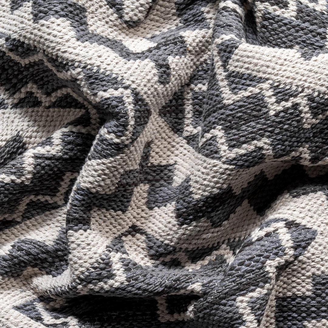 Elevate any space in your home with the geometric trellis pattern. Bold and beautiful this rug is sure to stand out. Made from 100% cotton, it is lightweight and sleek.