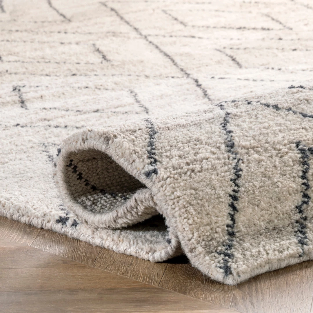 Hand knotted from luxuriously soft, high quality wool, this rug gives of a natural feel while adding just the right amount of warmth to your home. Beautiful and versatile this geometric diamond pattern will make a wonderful addition to any space.