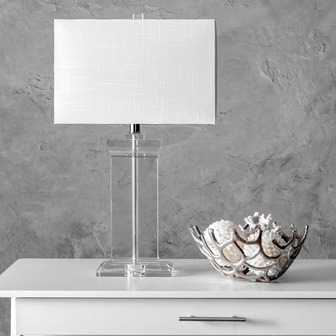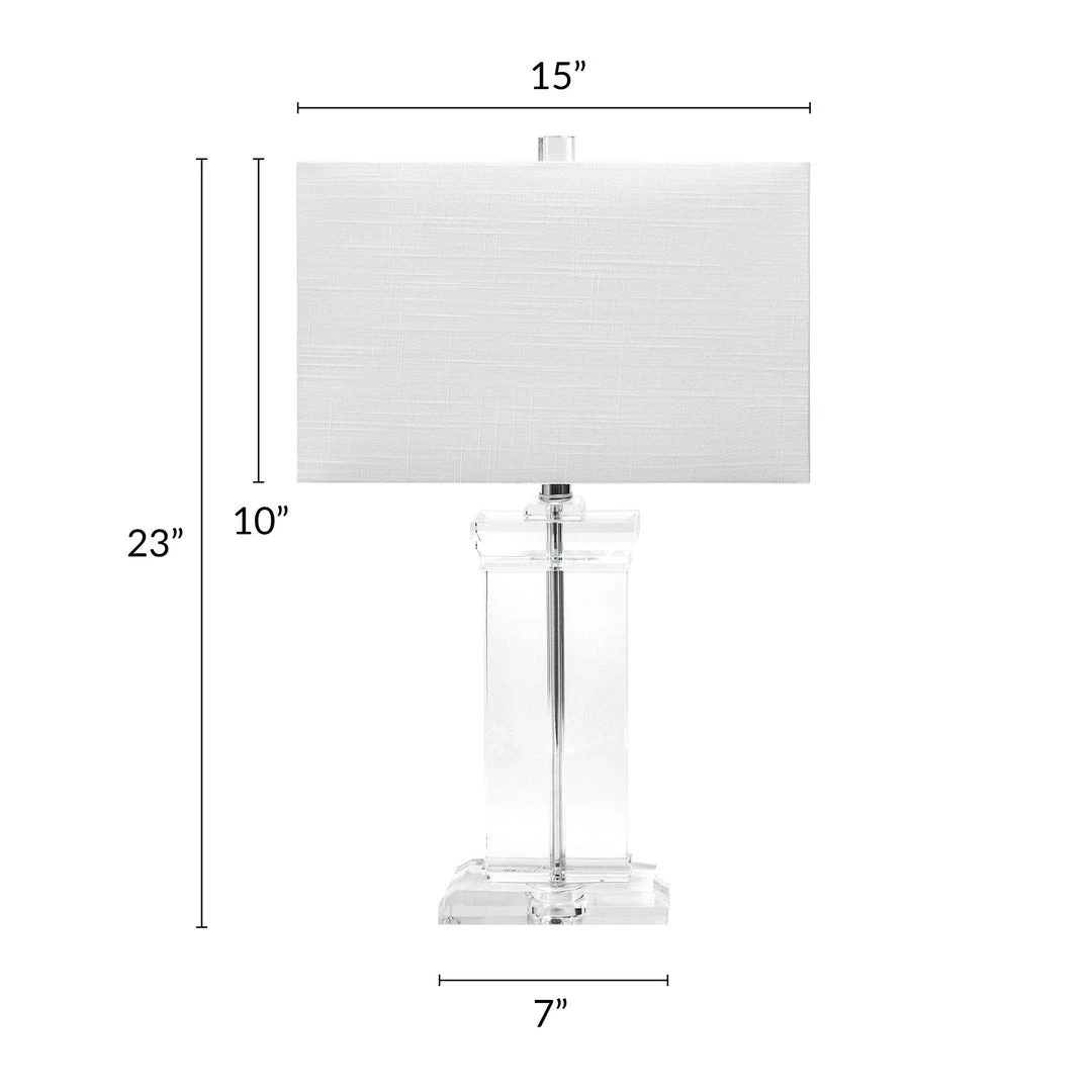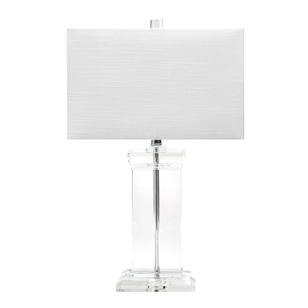 Let your room shine with the addition of this modern, 25-inch high, Crystal lamp. Its cotton shade delivers ambient lighting to an area. Add a vibrant flair to any room with its Clear finish.