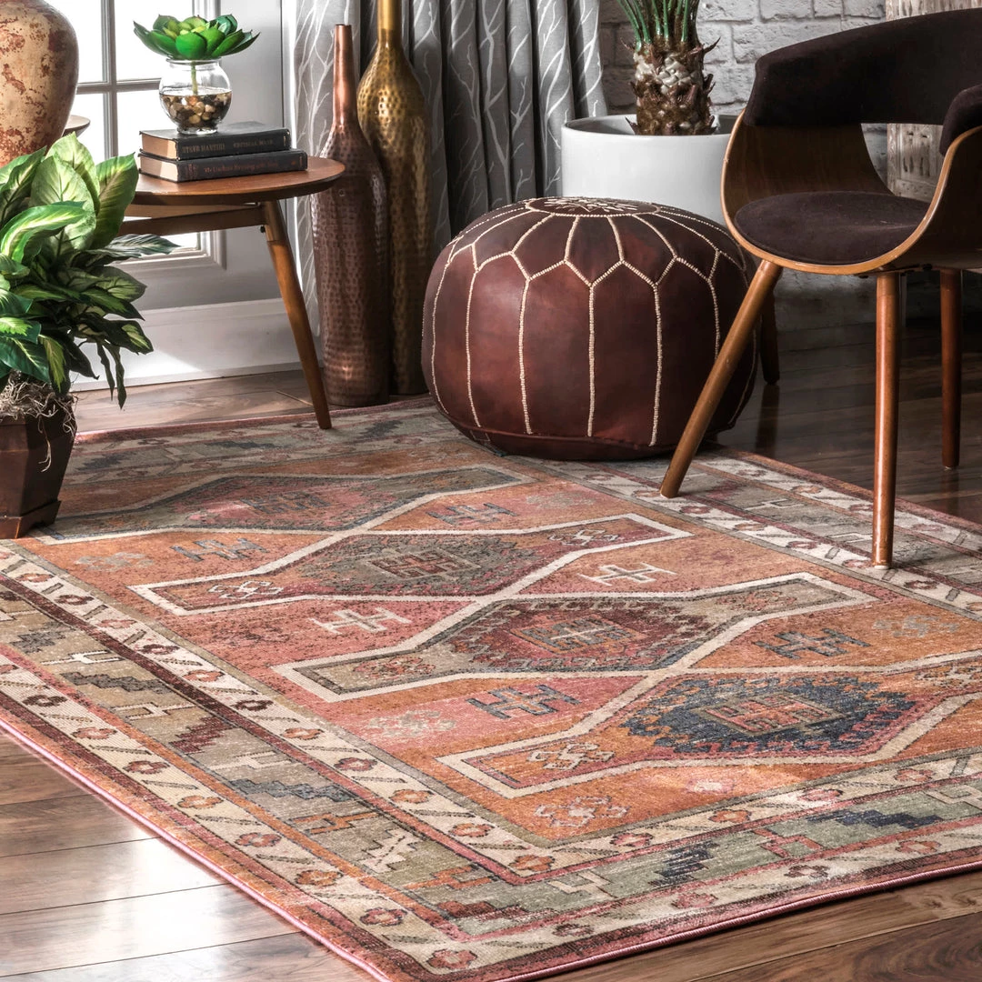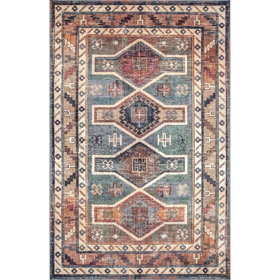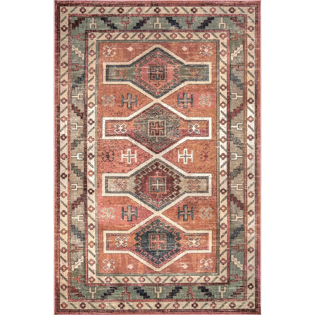 Machine-made in Egypt of soft synthetic materials, this rug will warm up any space with its tribal feel.