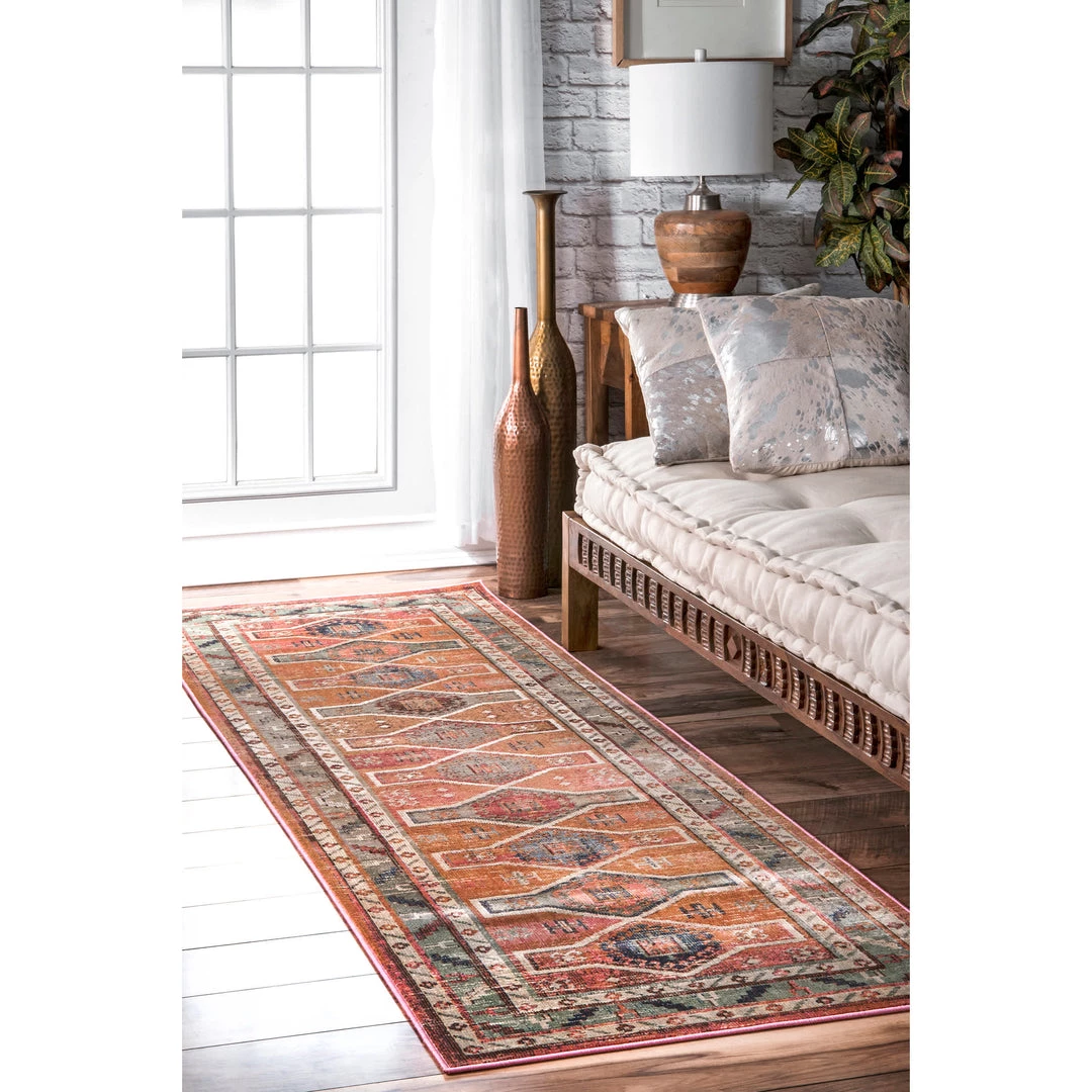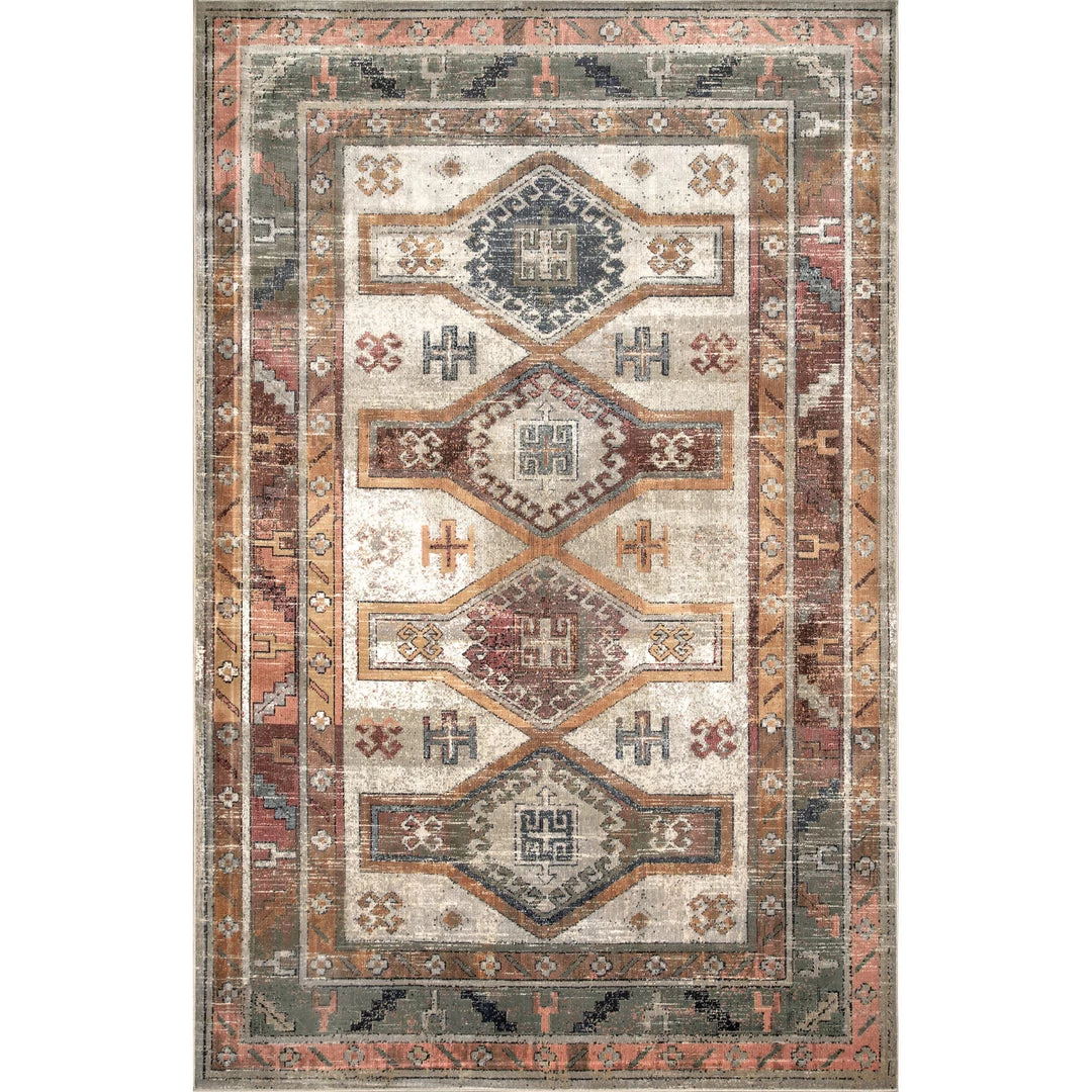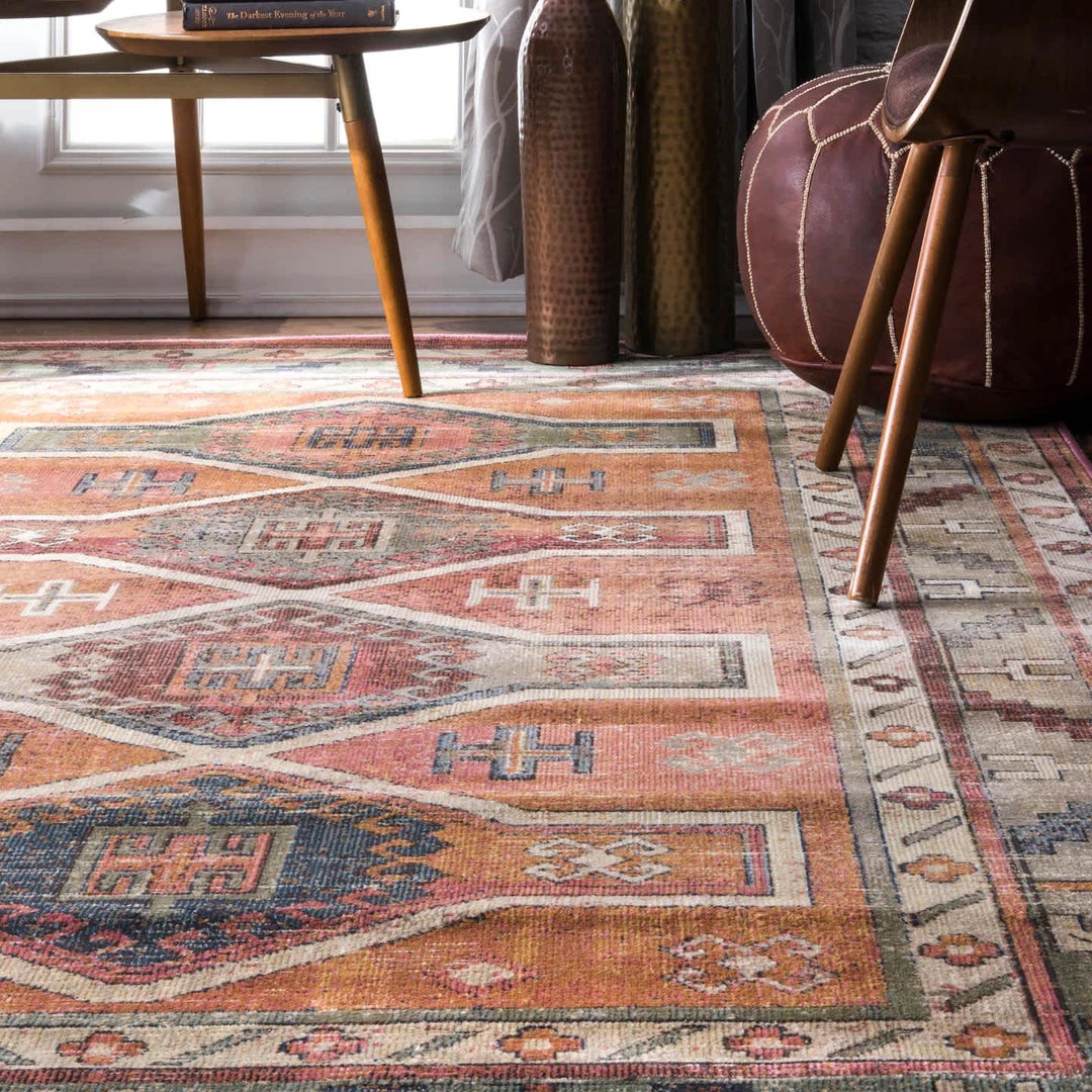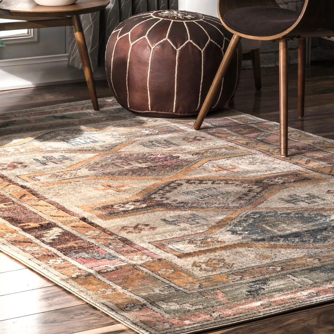 Machine-made in Egypt of soft synthetic materials, this rug will warm up any space with its tribal feel.