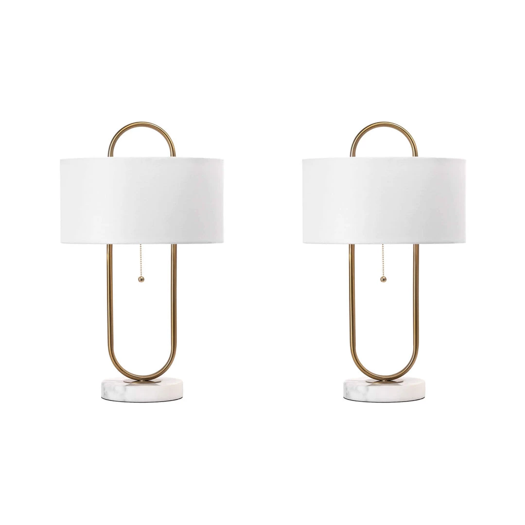 Place this versatile table lamp on a side table, end table, or desk to provide more light for reading or watching television. The steel novelty base gives off a contemporary look, while the classic fabric drum lampshade ensures ample lighting. The simple on-off switch allows for ease of use and functionality.