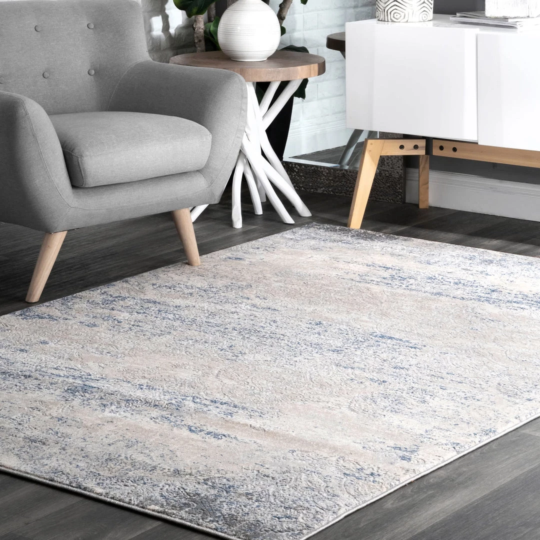 Unique distressed patterns are what make this collection so desirable. Machine made from durable, easy to clean polypropylene fibers, each piece features a beautiful abstract design.