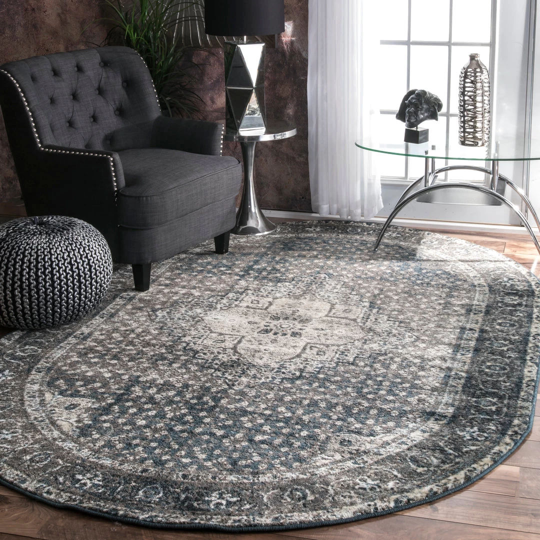 This traditional vintage medallion area rug is available in many different shapes and sizes. Made from soft synthetic materials this style is built to last and comfortable underfoot.