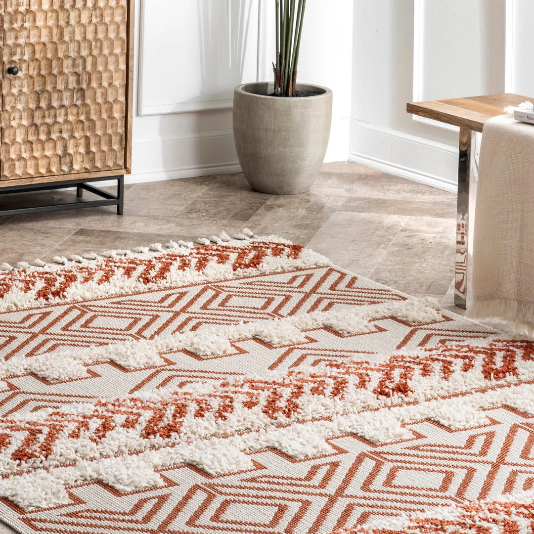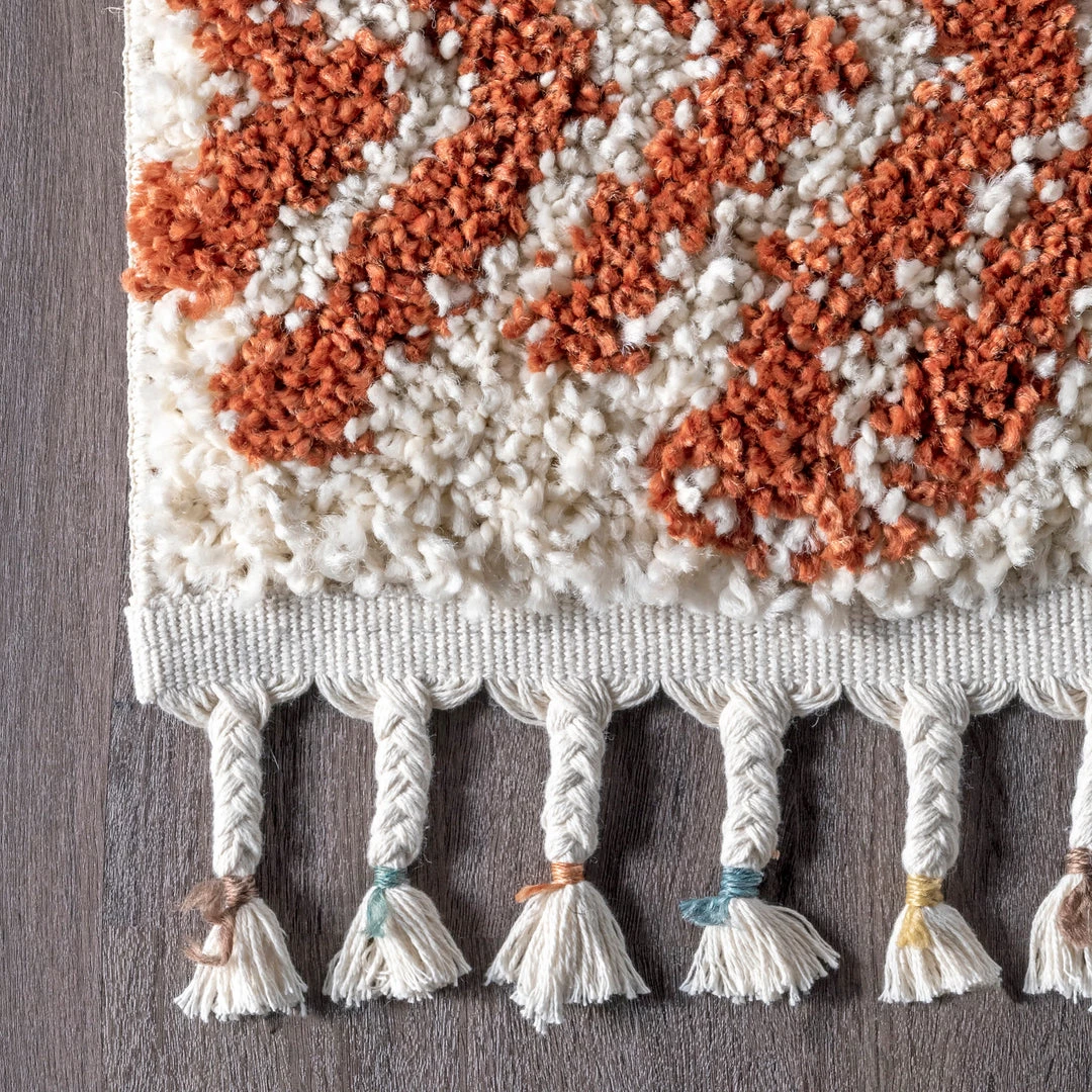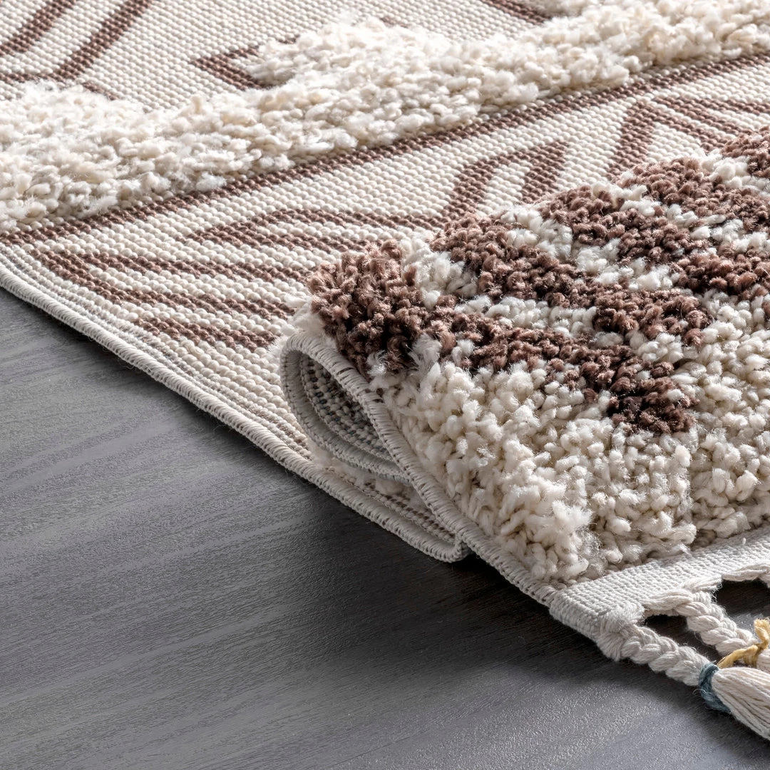 Step out of your comfort zone with a high-low, textured weave. This eye-catching tribal print will have your house feeling like a home in no time. The braided tassels at both ends add an extra ounce of flair to dress up any room.